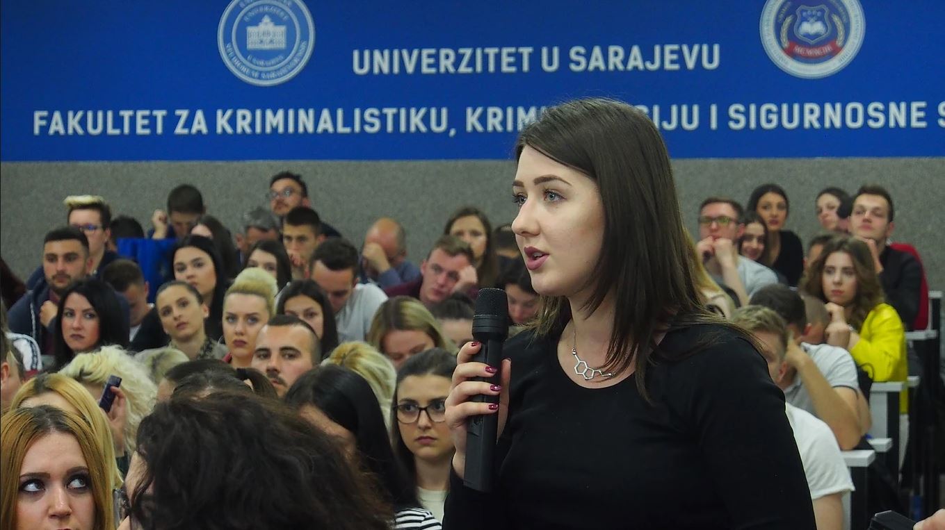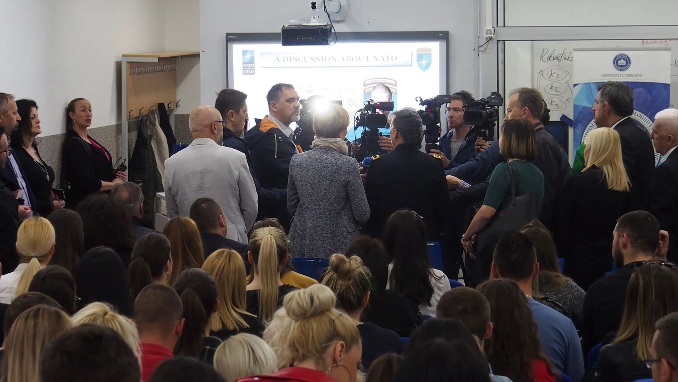 U prepunoj sali Fakulteta za kriminalistiku, kriminologiju i sigurnosne studije generalica Bissell odgovarala je na brojna pitanja prisutnih, posebno studenata, te doprinijela, kako je to u pozdravnom govoru istakao dekan Korajlić, otklanjanju mnogih dilema kada je u pitanju budućnost Bosne i Hercegovine u pravcu atlantskih integracija.