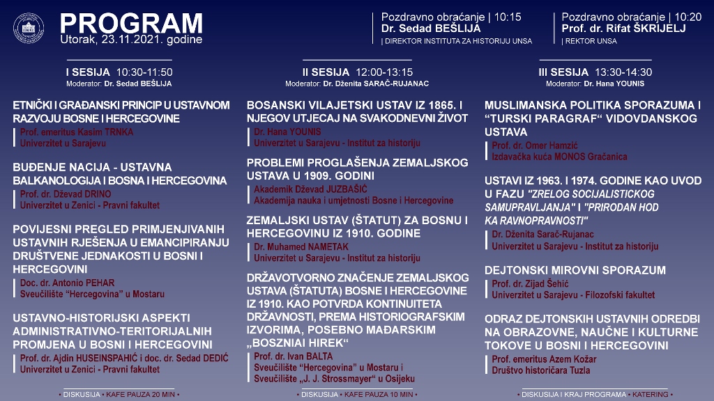 Naučni skup "Ustavnost Bosne i Hercegovine kroz historiju" bit će održan 23. novembra 2021. godine u svečanoj sali Univerziteta u Sarajevu.