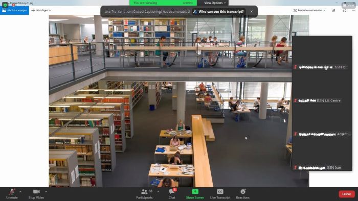 46. godišnji sastanak ISSN (International Standard Serial Number) nacionalnih centara je održan i ove godine u online formatu. Sastanak se održao u organizaciji Njemačke nacionalne biblioteke koja bi u normalnim uslovima bila i domaćin ovog sastanka.