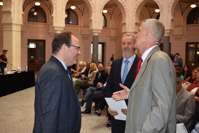 Sudionike ceremonije pozdravio je zamjenik visokog predstavnika u BiH i šef Političkog i fiskalnog odjela Tobias Privitelli, prisjećajući se stradanja sarajevske Vijećnice, zdanja koje nosi veliku simboliku, te izražavajući zadovoljstvo njenom uspješnom obnovom.