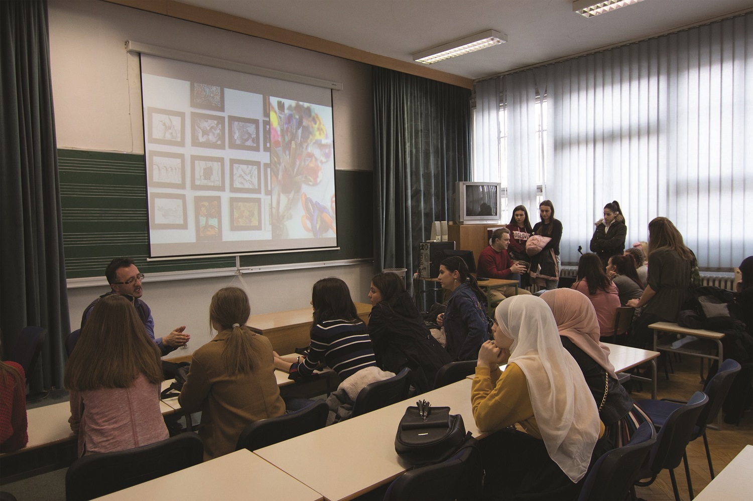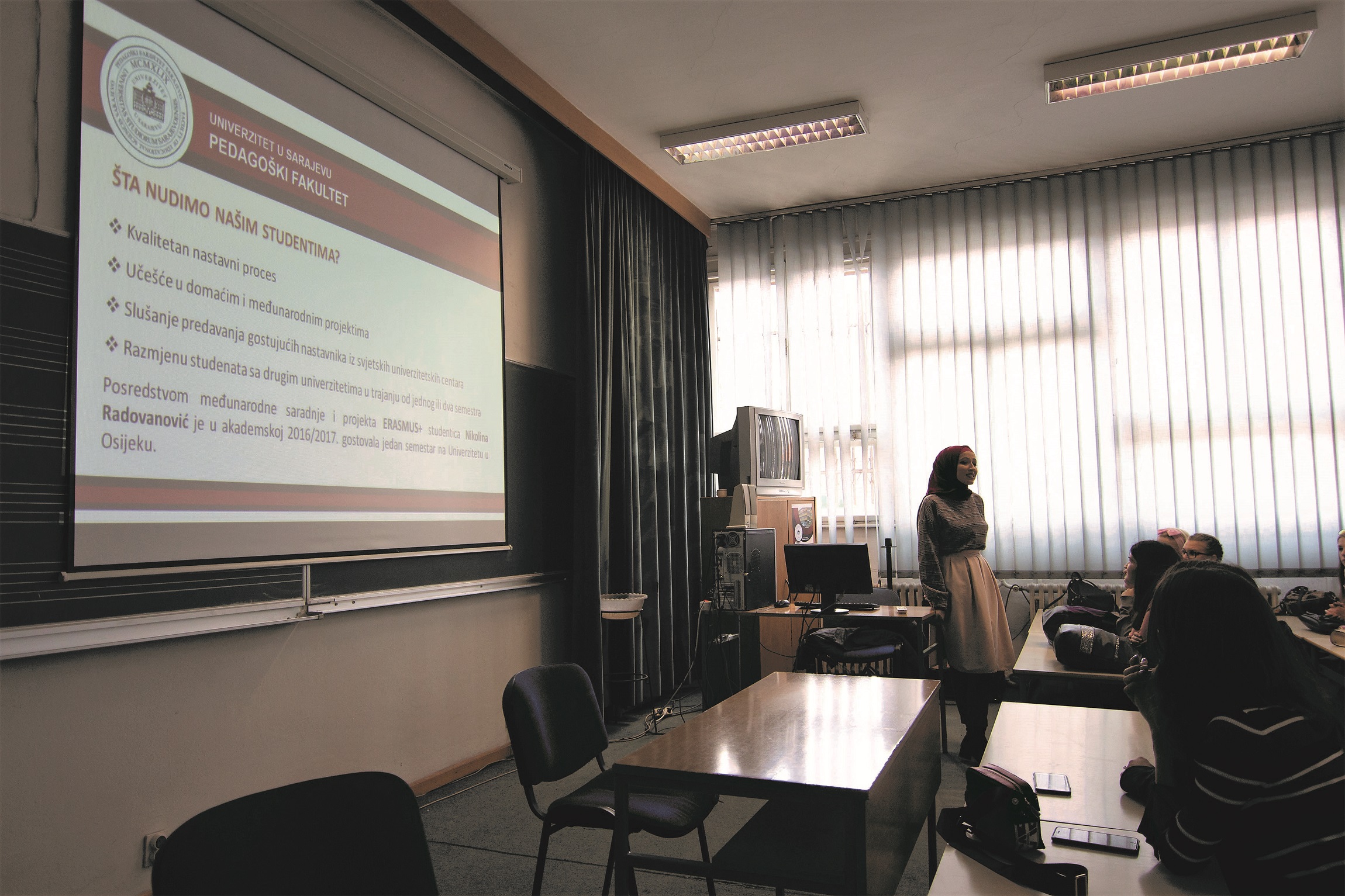 Poželjeli su dobrodošlicu svim gostima i detaljno predstavili planove i programe odsjeka, relevantne predmete pri bodovanju za upis na Fakultet, upoznali ih s atmosferom koja vlada u nastavnom procesu Pedagoškog fakulteta kroz kratki film o nastavnom radu i onome što se nudi studentima budućim učiteljima, odgajateljima, edukatorima i nastavnicima različitih profila. Potom su studenti i nastavnici poveli učenike u obilazak sala i prostorija za nastavu i kratko su prisustvovali pojedinim nastavnim satima koji su se odvijali u tom vremenskom intervalu.