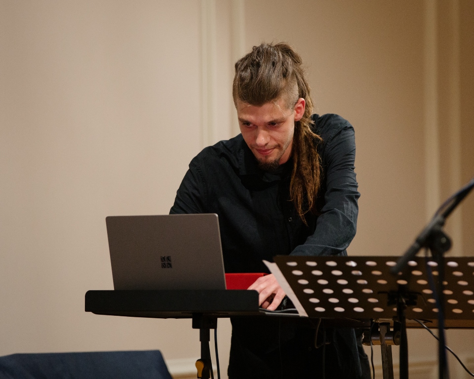 Koncert je zaokružen nastupom Dine Rešidbegovića (r. 1975), kompozitora i profesora na Muzičkoj akademiji UNSA, koji je manipulacijom zvuka na Make Noise Modular Synth i Moog Subsequent 37 Analog Synth interpretirao Plus za sintetizatore zvuka