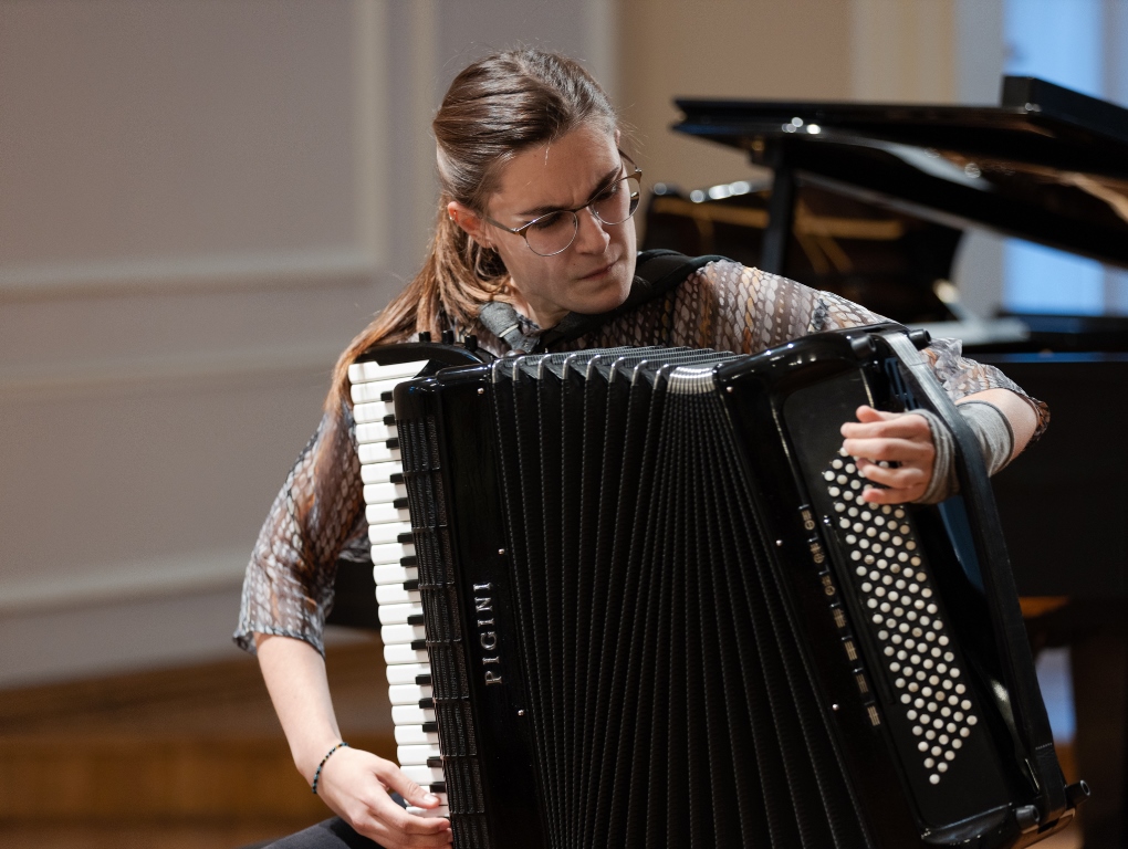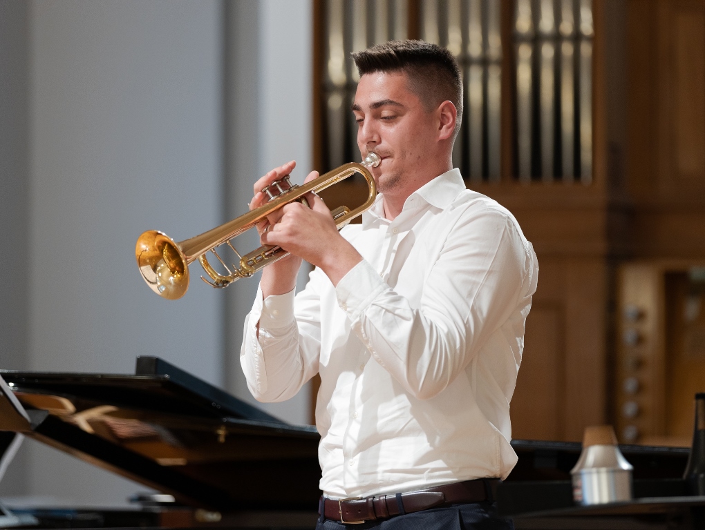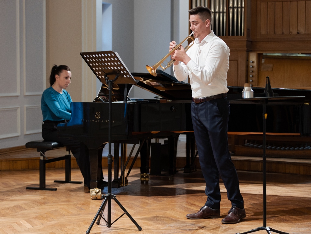Stav Grazioso iz Sonate za klarinet i klavir Leonarda Bernsteina izveli su Adnan Haskić (klarinet) i Melina Šišić (klavir), dok je Benjamin Drijenčić (truba) sa umjetničkom saradnicom mr. Amilom Čengić (klavir) interpretirao “Rhapsody in Blue” za trubu i klavir Georgea Gershwina. Iris Granulo (harmonika) svirala je “Flashing”norveškog kompozitora Arne Nordheima.