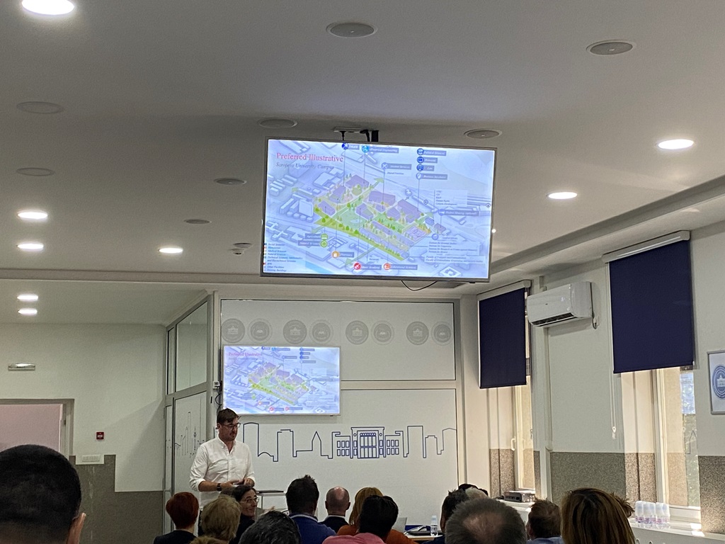 Prezentacije je održao tim izabranog konsultanta Ove Arup & Partners International Limited (Velika Britanija), uz prisustvo svih članova imenovanih u radnu grupu pod nazivom "Stakeholder forum", te predstavnika Univerziteta u Sarajevu, njegovih organizacionih jedinica i Savjeta plana.