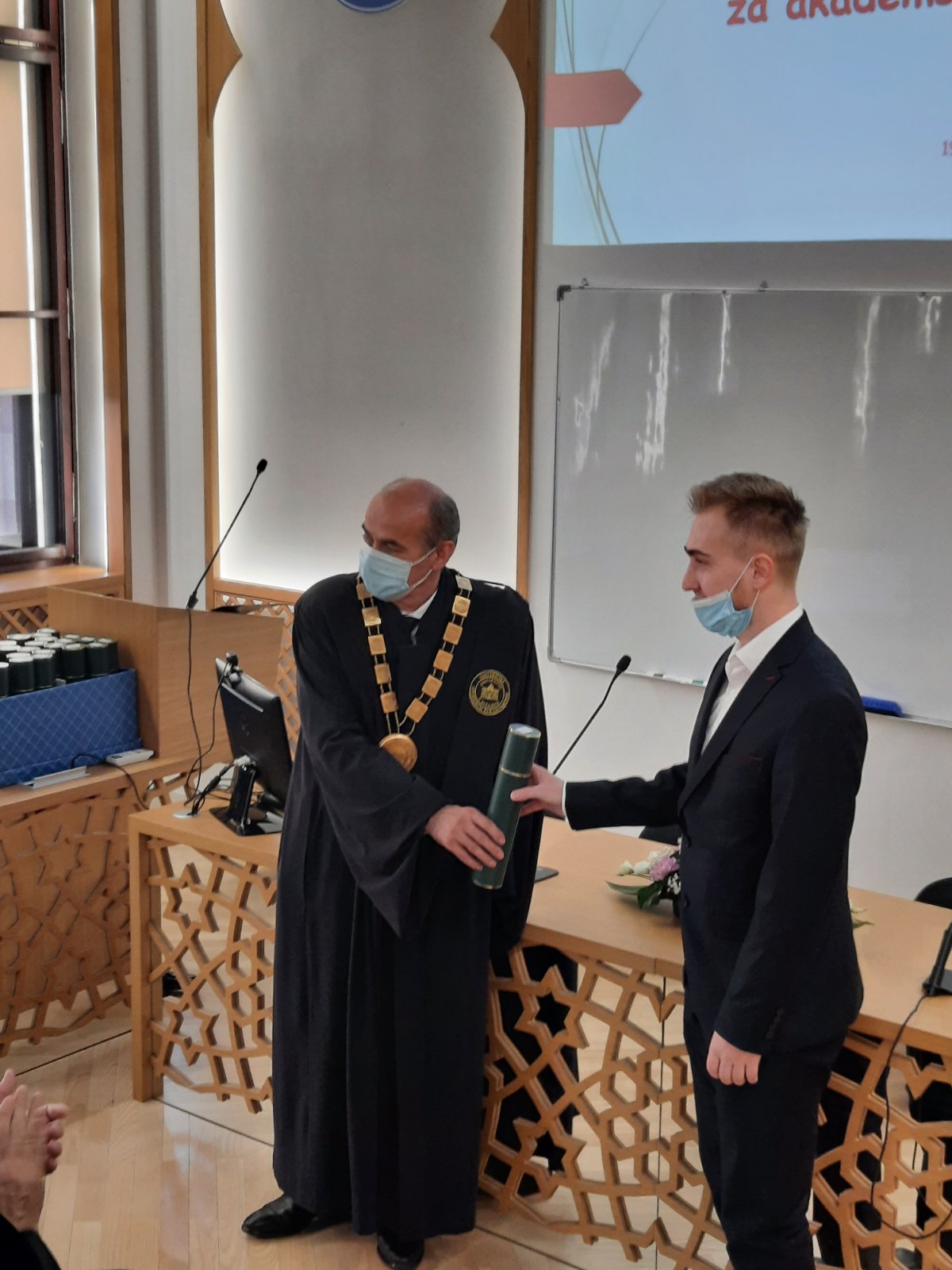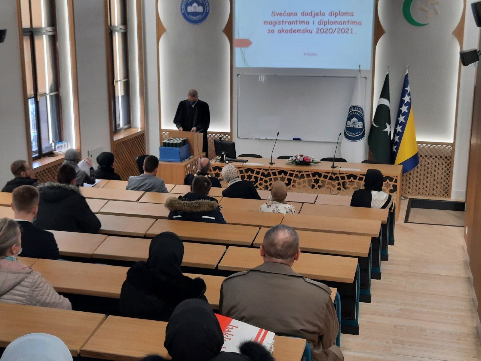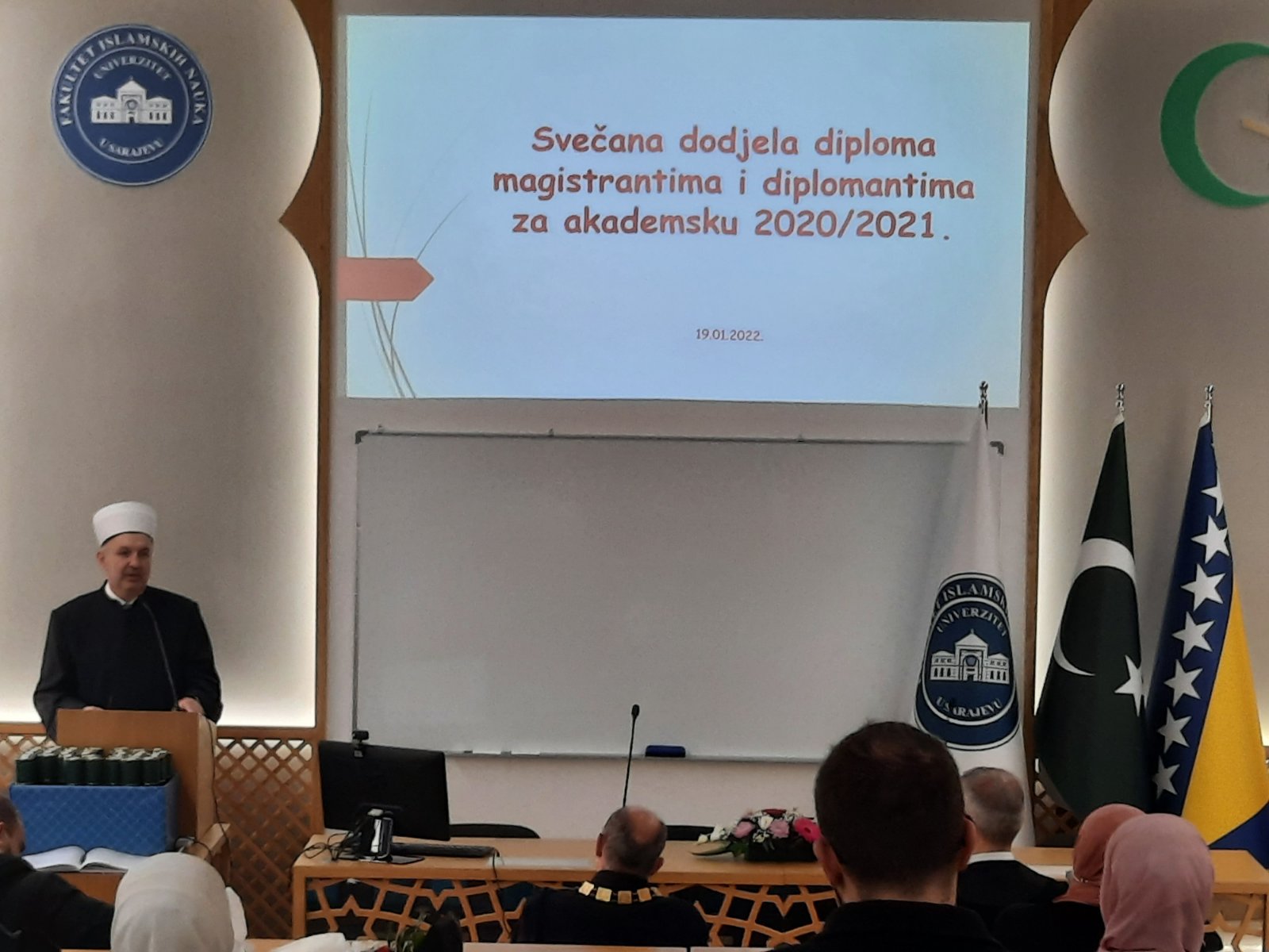 Diplomantima i magistrantima se ovom prilikom obratio zamjenik reisu-l-uleme Islamske zajednice dr. Enes Ljevaković. „Danas u vaše ruke ne uručujemo samo diplome i priznanja, već i jedan veliki emanet; emanet čuvanja i afirmiranja Božije vjere na ovim prostorima! S preuzimanjem diplome i priznanja, preuzima se i taj emanet, pa neka to bude s Božijim imenom i s dovom dragom Bogu. Nadamo se da ćete opravdati ukazano povjerenje, osvjetlati svoj i obraz vaših profesora i biti radost svojim porodicama, Zajednici i domovini“, naglasio je zamjenik reisu-l-uleme dr. Enes Ljevaković.