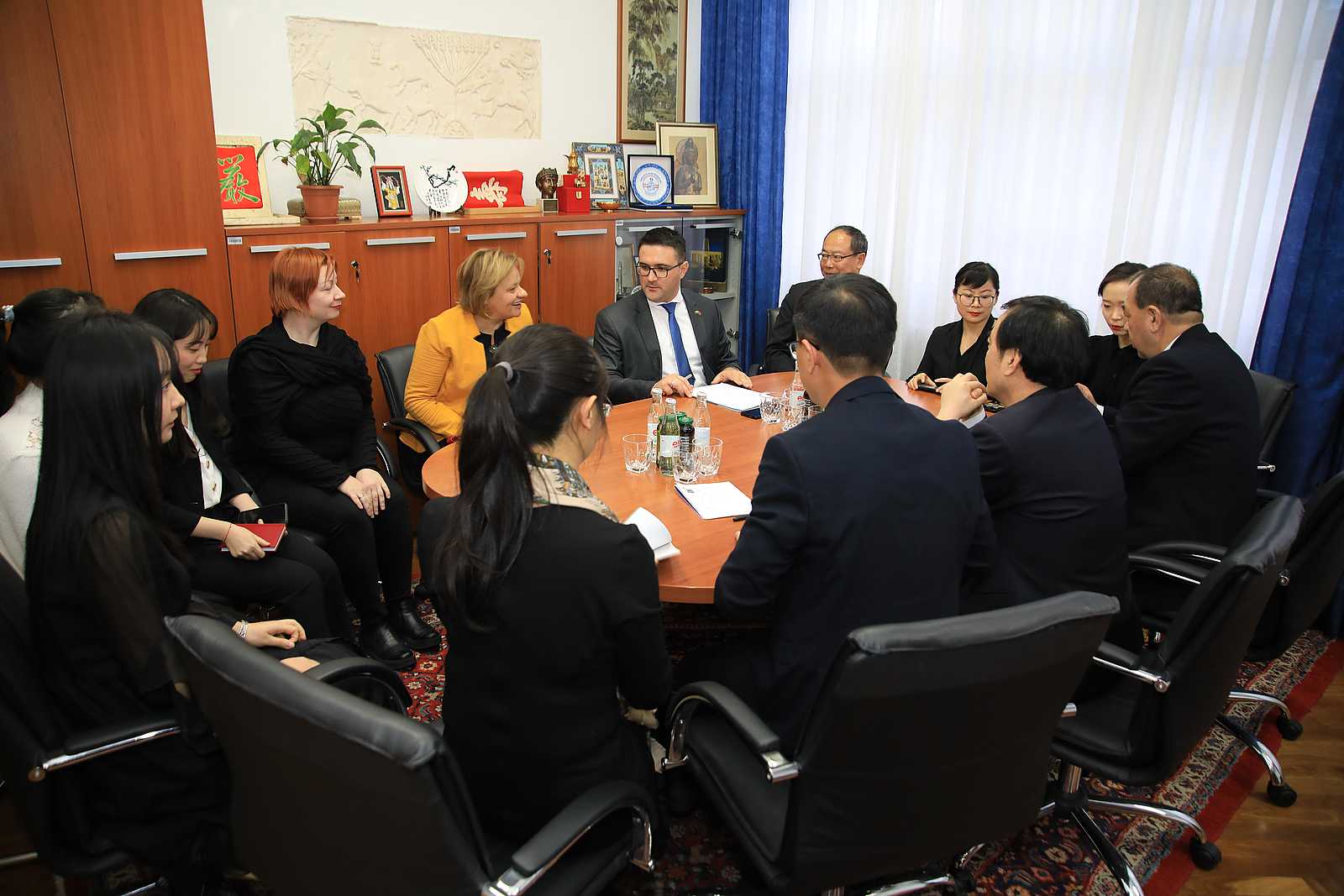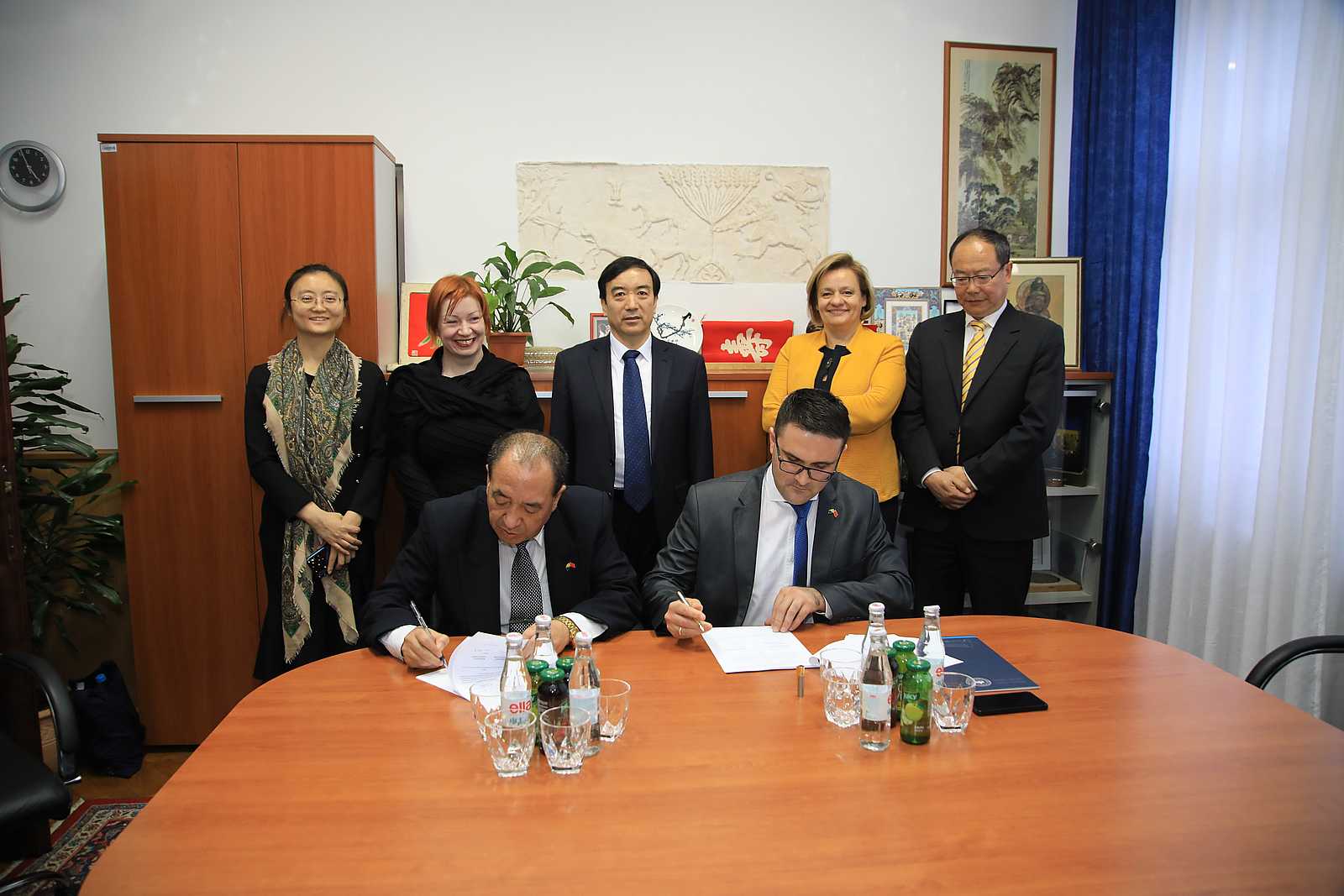 Sastanku i potpisivanju Sporazuma prisustvovali su doc. dr. Amir Duranović, prodekan za naučnoistraživački rad, međunarodnu akademsku saradnju i izdavaštvo Filozofskog fakulteta, prof. dr. Aleksandra Nikolić, prorektorica za međunarodnu saradnju Univerziteta u Sarajevu, doc. dr. Selma Đuliman, koordinatorica programa za uvođenje predmeta Kineski jezik na Filozofskom fakultetu, prof. dr. Tian Shu, prorektor Univerziteta Northwestern Normal, Sun Mei, zamjenik direktora Ureda za međunarodnu saradnju NWNU, prof. dr. Quan Xiaohui, savjetnik za međunarodnu saradnju NWNU, prof. dr. La Weixin, direktor Konfučijevog instituta u Sarajevu sa saradnicima.