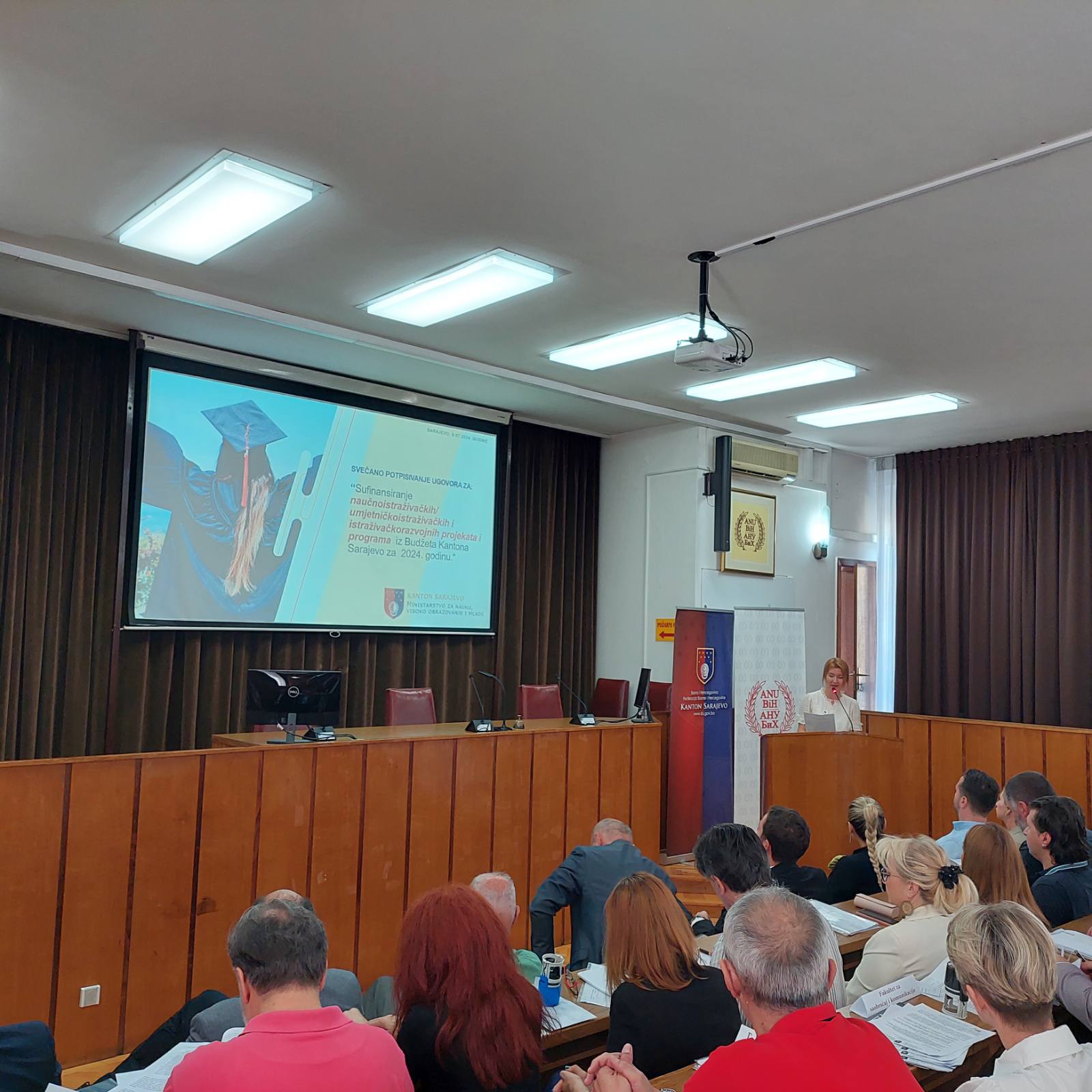 Potpisivanje ugovora za sufinansiranje naučnoistraživačkih/umjetničkoistraživačkih i istraživačkorazvojnih projekata i programa iz Budžeta Kantona Sarajevo za 2024. godinu upriličeno je danas u Akademiji nauka i umjetnosti Bosne i Hercegovine.