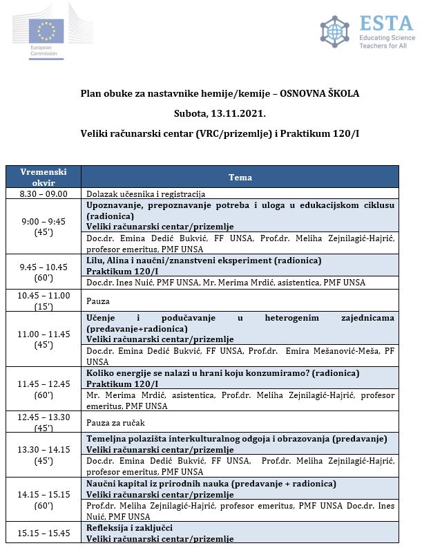 Program stručnog usavršavanja za nastavnike hemije/kemije u okviru Erasmus+ ESTA projekta
