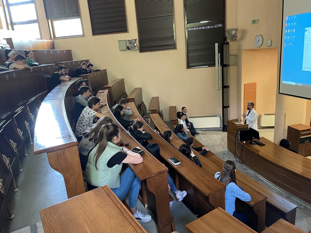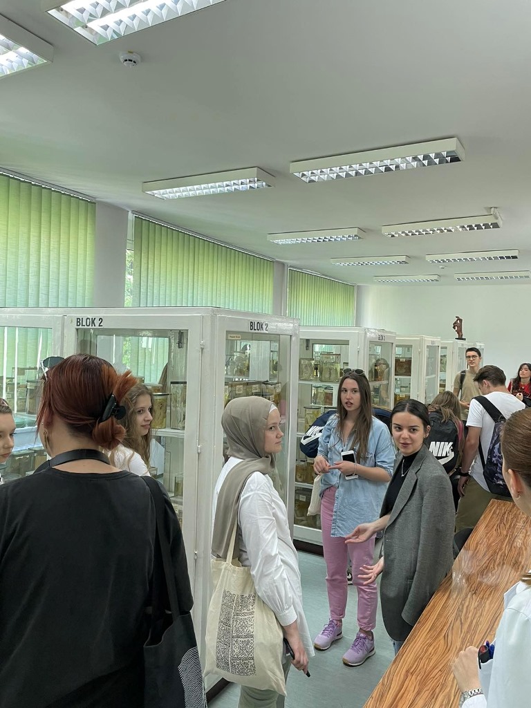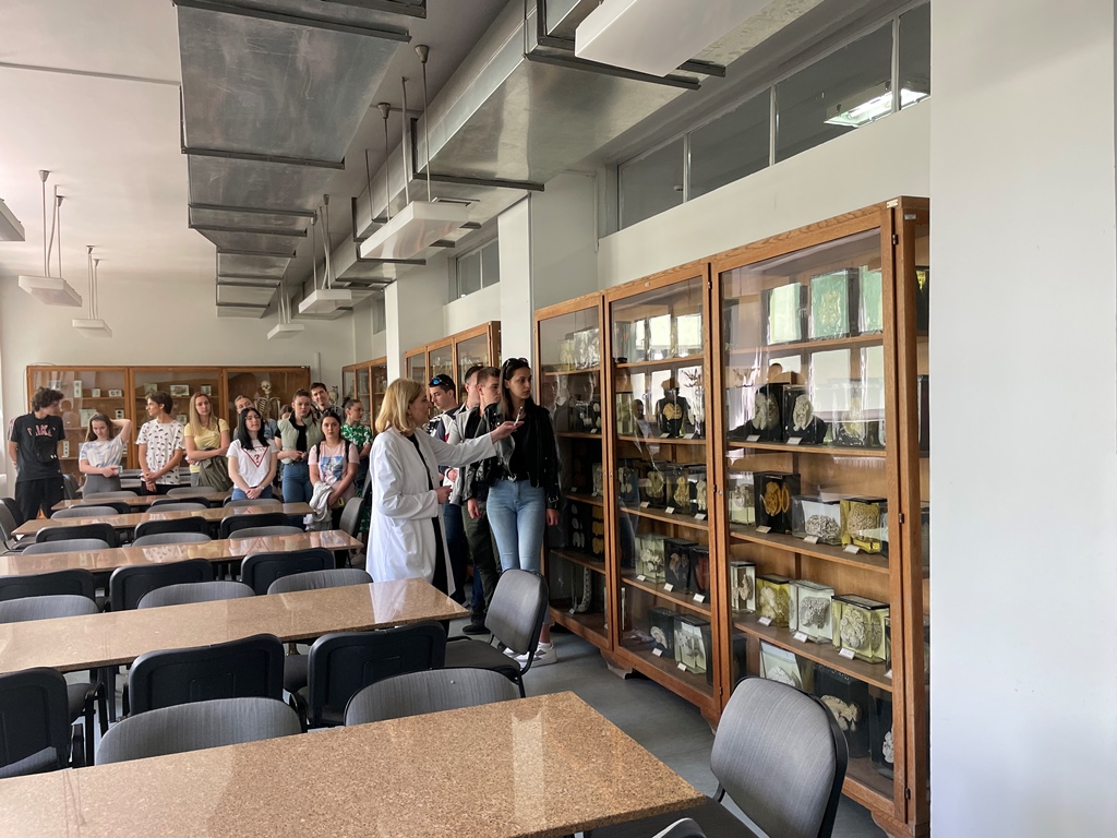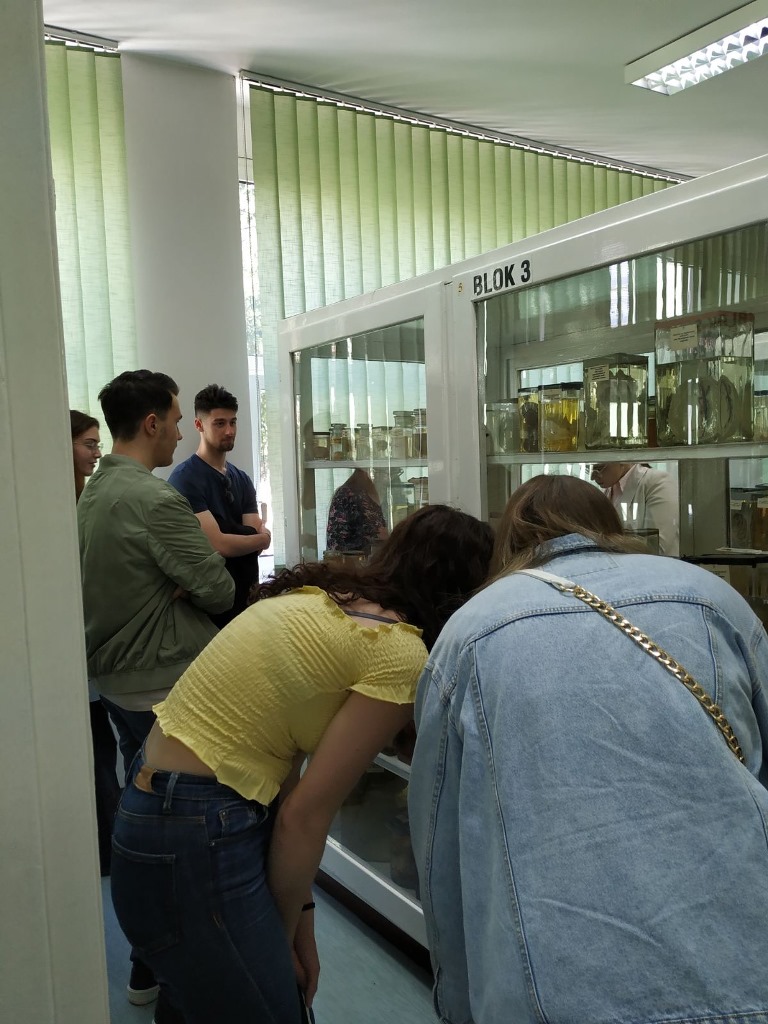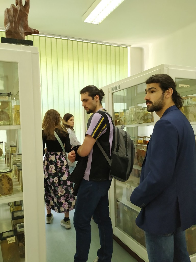 Nakon toga, uslijedile su posjete na Katedri za anatomiju čovjeka, Katedri za patologiju, Katedri za medicinsku mikrobiologiju, parazitologiju i virusologiju, gdje su učenici imali priliku upoznati se sa načinom studiranja na našem Fakultetu kao i sa nastavnim osobljem, prostorima i načinom izvođenja nastave i vježbi.