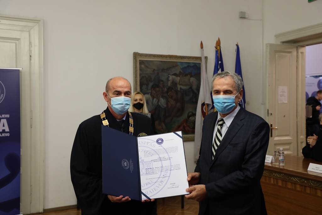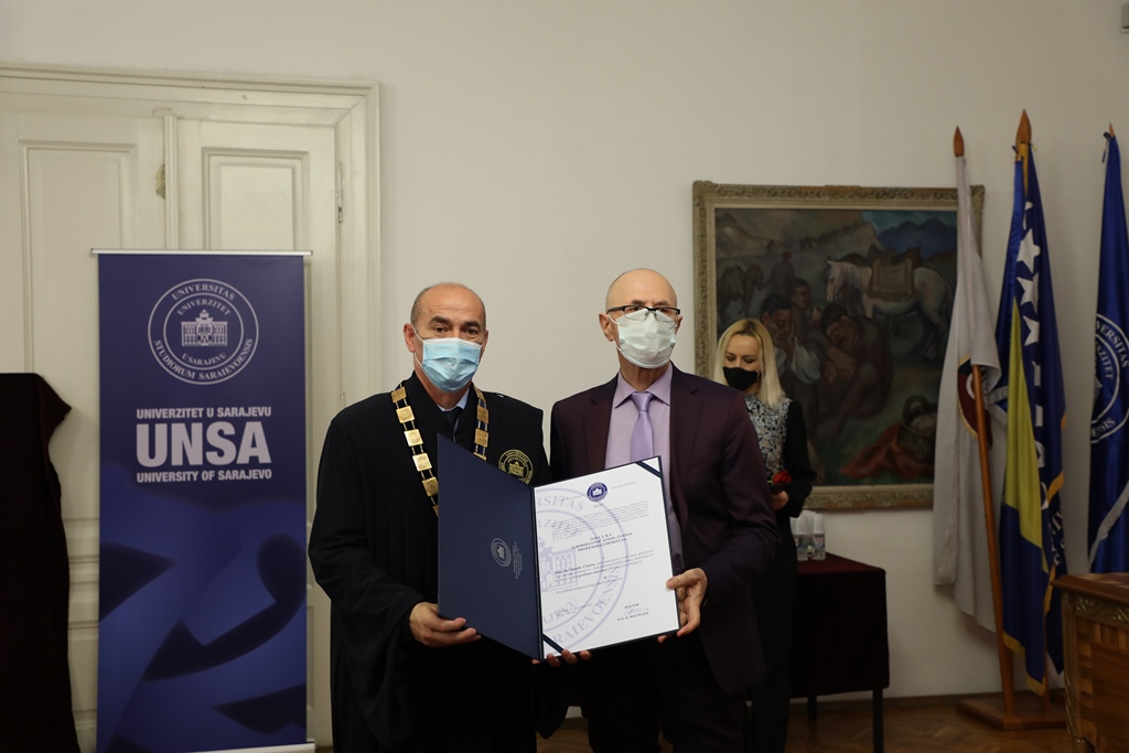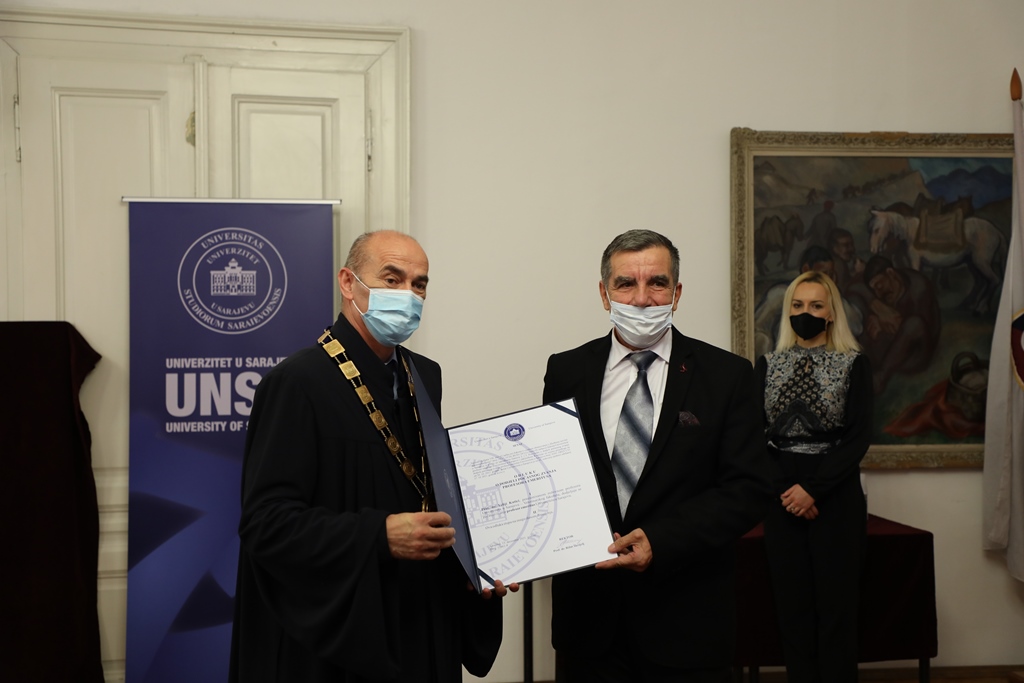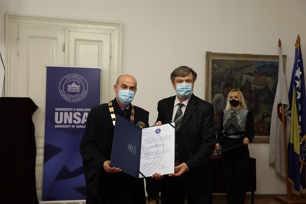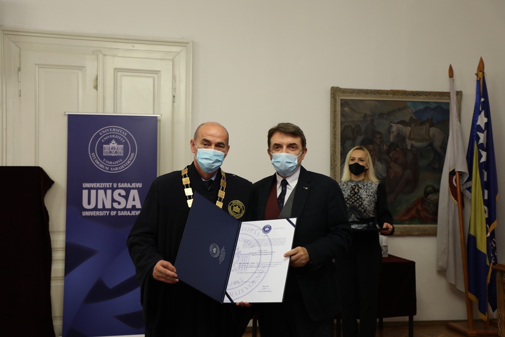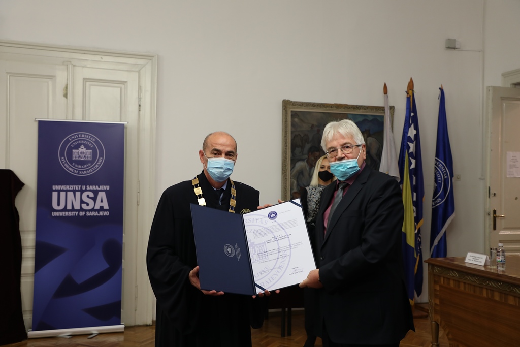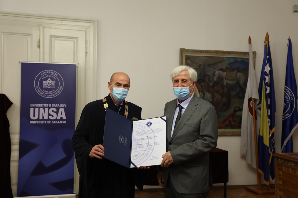 Rektor Univerziteta u Sarajevu prof. dr. Rifat Škrijelj je na čast profesora emeritusa Univerziteta u Sarajevu promovirao: