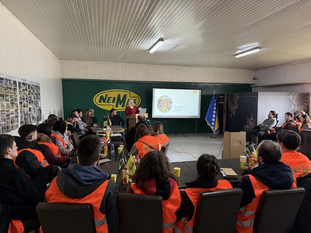 Studenti Odsjeka za industrijsko inžinjerstvo i menadžment, Univerziteta u Sarajevu – Mašinskog fakulteta 2. i 3. godine I ciklusa studija, kao i studenti 1. i 2. godine II ciklusa studija su 5.12.2025. godine imali priliku posjetiti kompaniju Neimax d.o.o. Visoko. Posjeta je organizovana uz pratnju akademskog osoblja: prof. dr. Mugdim Pašić, prof. dr. Izet Bijelonja, prof. dr. Hadis Bajrić, prof. dr. Edin Kadrić, doc. dr. Zedina Lavić, prof. dr. Mirza Pašić, doc. dr. Ajdin Vatreš i ass. mr. Faris Ferizbegović.