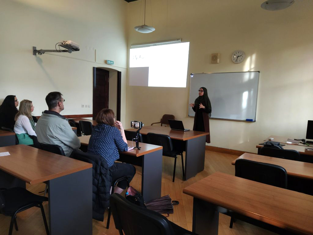 Historiju, djelovanje i način rada Fakulteta, kao i značajnije činjenice o islamu u Bosni i Hercegovini gostima su predstavili Mujesira Neimarlija, studentica koordinatorica za međunarodnu saradnju Fakulteta, Edin Čolaković i Medina Hadžić, članovi Upravnog odbora USFIN-a. O svom vlastitom iskustvu na master-programu „Islam in Europe“, programu na engleskom jeziku, koji je otvoren za studente svih religija, govorio je Abdelhakim Bouchra.