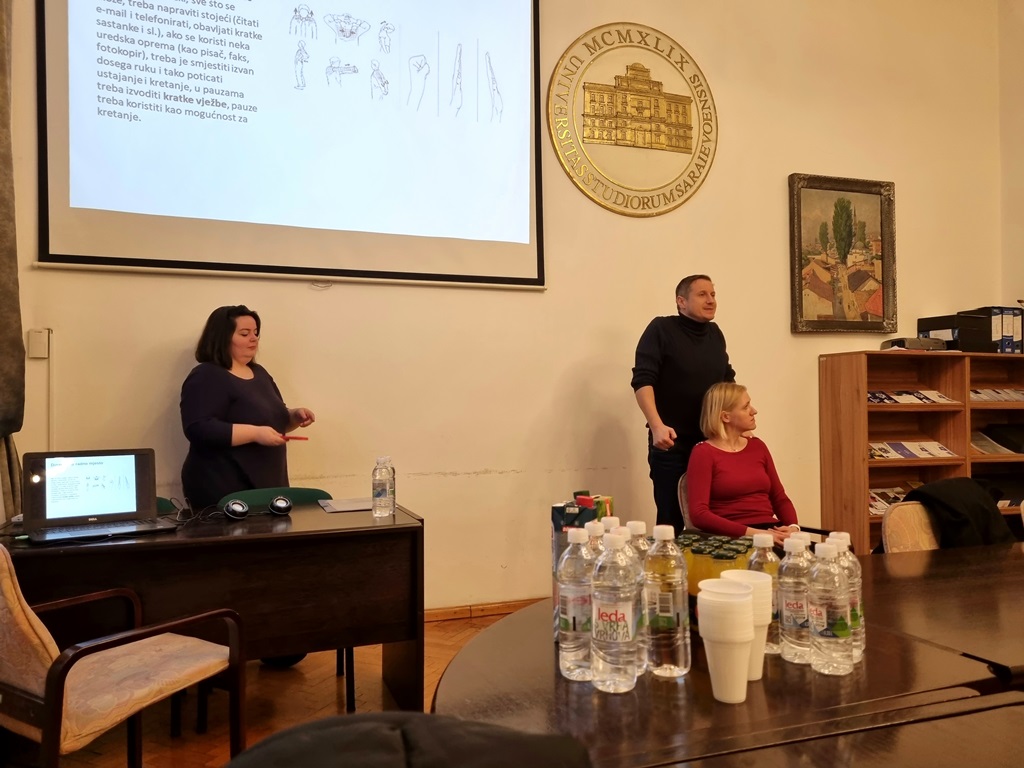 Kako bismo se lakše nosili s ovim osjećajima i umanjili negativne posljedice stresa na naše mentalno zdravlje predavači su učesnicima pokazali kako će sami primjeniti neke od tehnika upravljanja stresom: