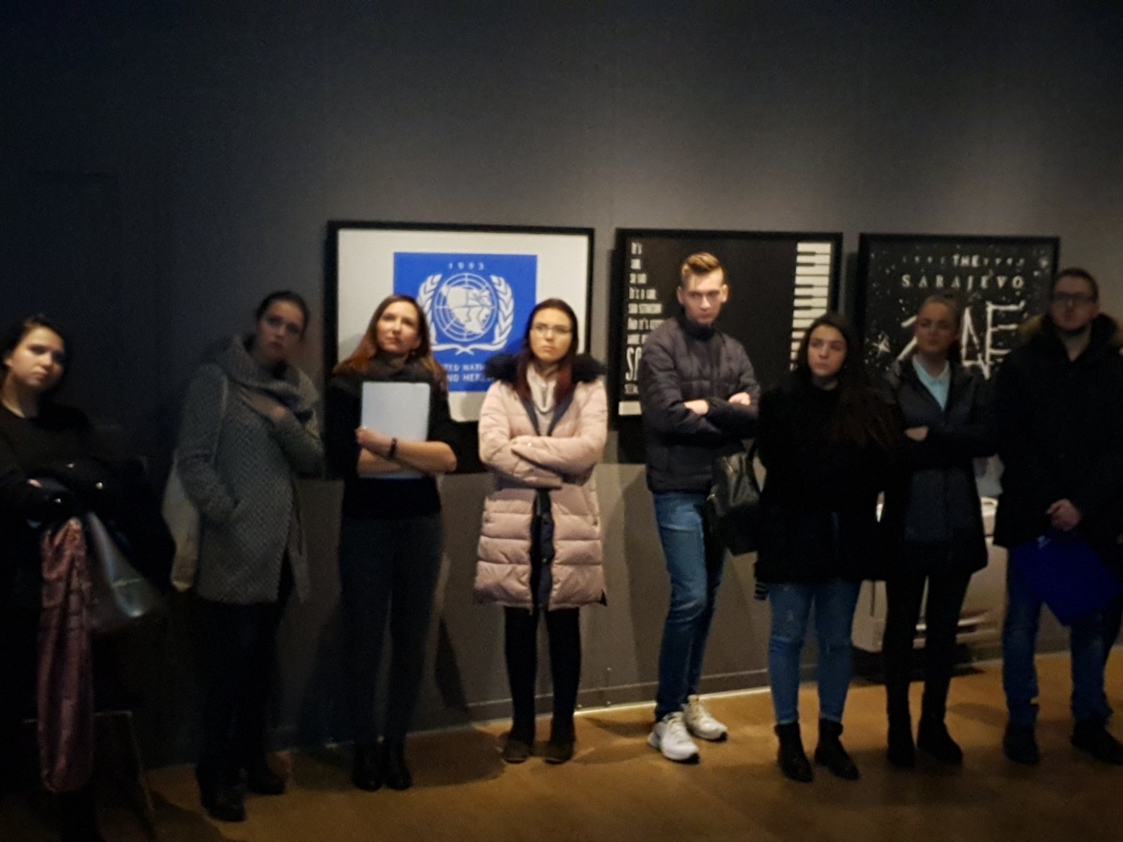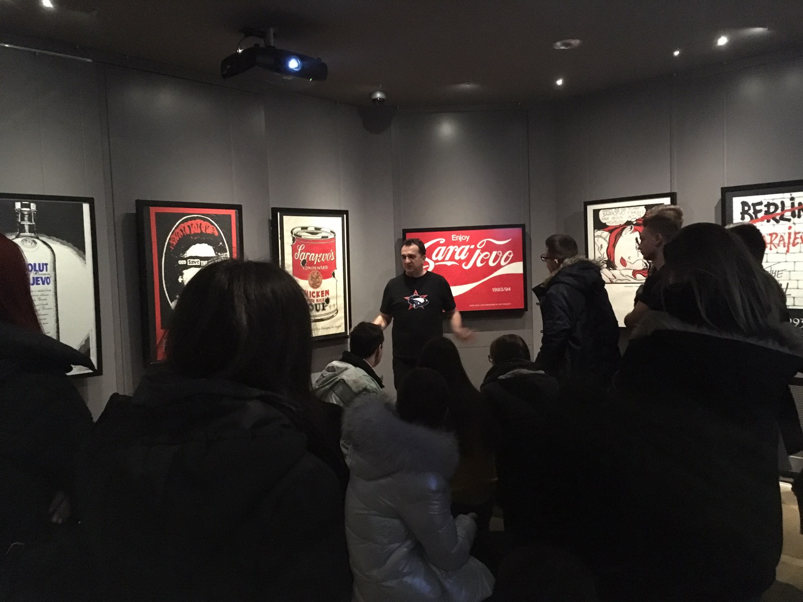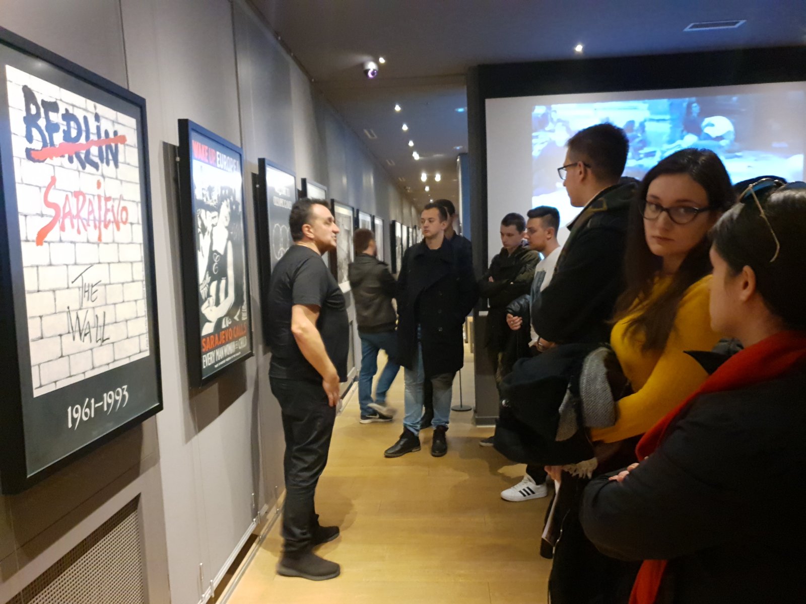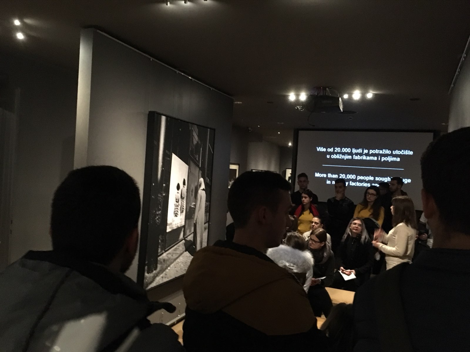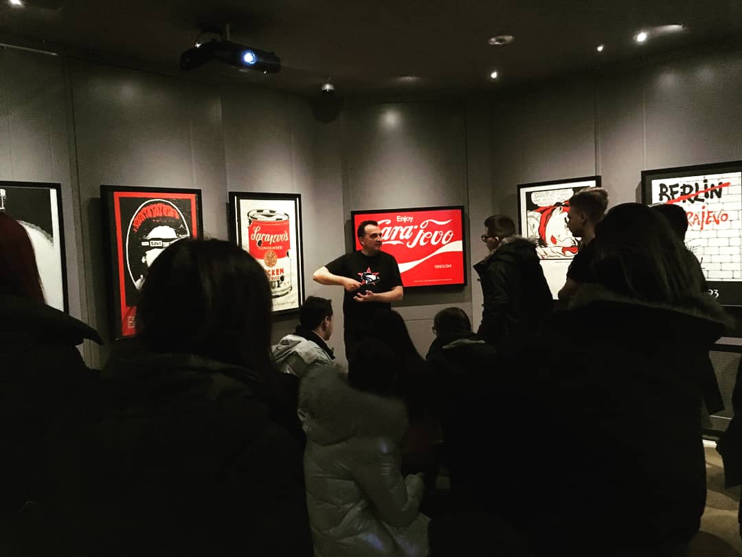 Uporedo s navedenim, realizirana je i kreativna radionica Podijelimo znanje: Iz druge perspektive, čiji programski okvir studentima Muzičke akademije želi obezbijediti kreativno okruženje za prepoznavanje i produbljivanje njihovih ideja i interesa izvan akademskim programom zadatog prostora, a kroz saradnju s profiliranim umjetnicima i naučnicima s drugih srodnih institucija (akademija umjetnosti, fakulteta, instituta za umjetničko/naučno istraživanje, umjetničkih galerija, medijskih i izdavačkih kuća). Jedan od ciljeva je i potaknuti studente na kritičko, kreativno mišljenje o pozicijama umjetnika, teoretičara umjetnosti i pedagoga u društvu, kao onih koji ukazuju na nužne promjene, iniciraju ih i ulažu u njihovu realizaciju, dok pritom brižljivo čuvaju općeljudske vrijednosti na kojima društvo počiva i odgovorno ih prenose novim generacijama. Stoga smo u ovom izdanju kreativne radionice Podijelimo znanje 2019/20.: Iz druge perspektive pozvali prof. mr. Bojana Hadžihalilovića, grafičkog dizajnera i jednog od idejnih tvoraca antologijskog djela Greetings from Sarajevo 1993, koje je i bilo u fokusu njegovog predavanja namijenjenog studentima MAS 27. 11. 2019. godine. Predavanje je održano u prostoru Galerije 11/07/95, koja, pored toga što već godinama zauzima suverenu poziciju u kulturi sjećanja na genocid u Srebrenici u julu 1995. godine, snažno odašiljući poruke o pogubnosti rata, pogubnosti ravnodušja spram njega i šutnje i zaborava nakon njega, nudi stalnu postavku navedenog Hadžihalilovićevog djela. Uvod u samo predavanje kroz obilazak Galerije kuratorice Anele Hakalović ukazao je na jedan od najvažnijih konteksta sagledavanja umjetničkog djela – njegove uloge u bosanskohercegovačkom društvu.