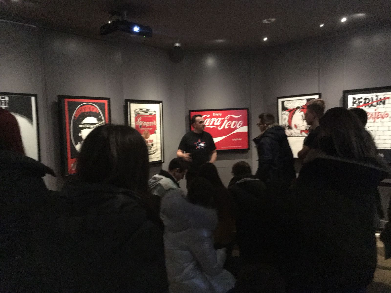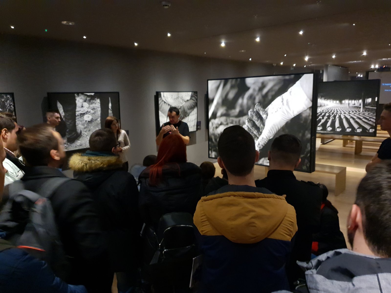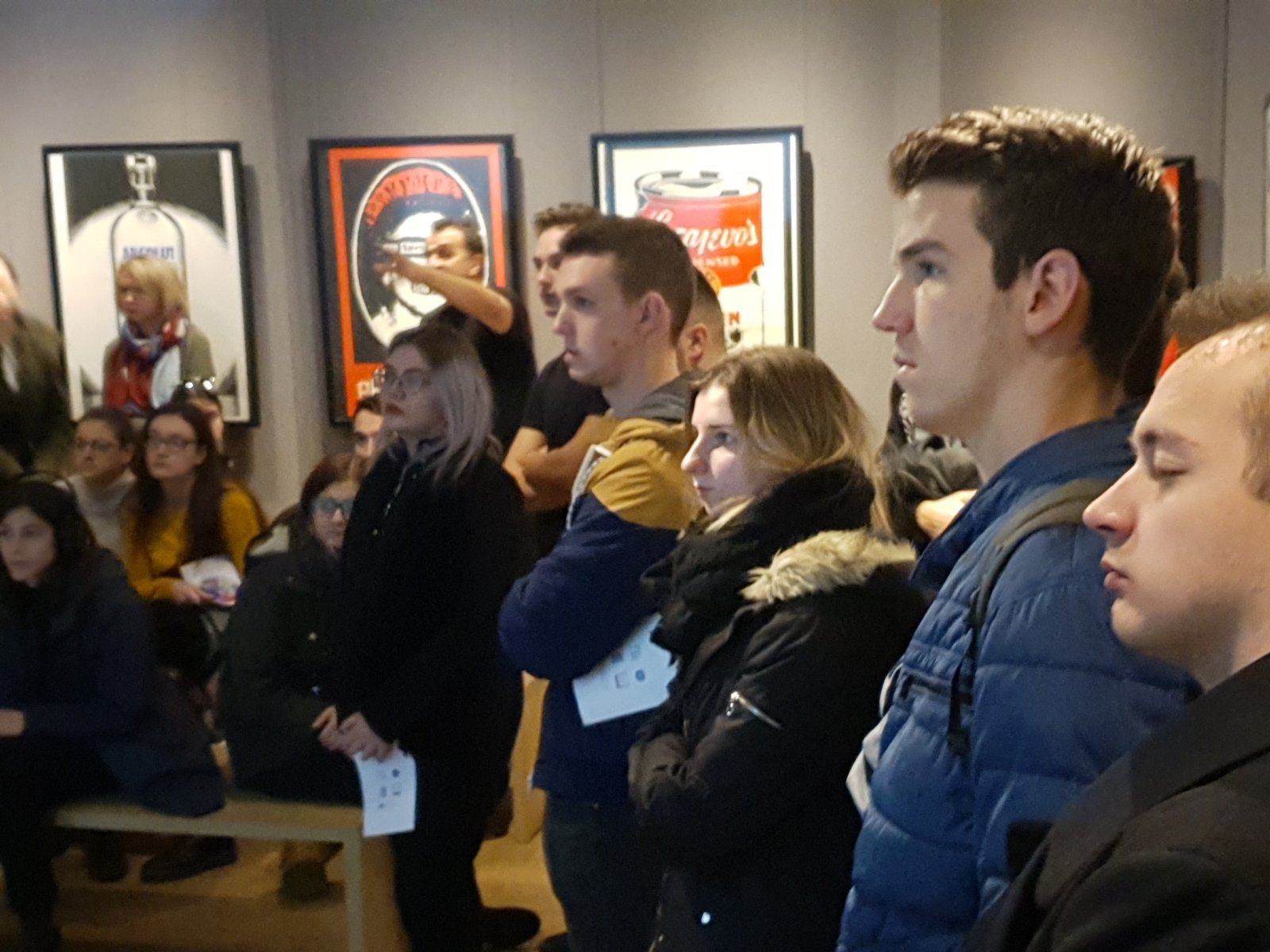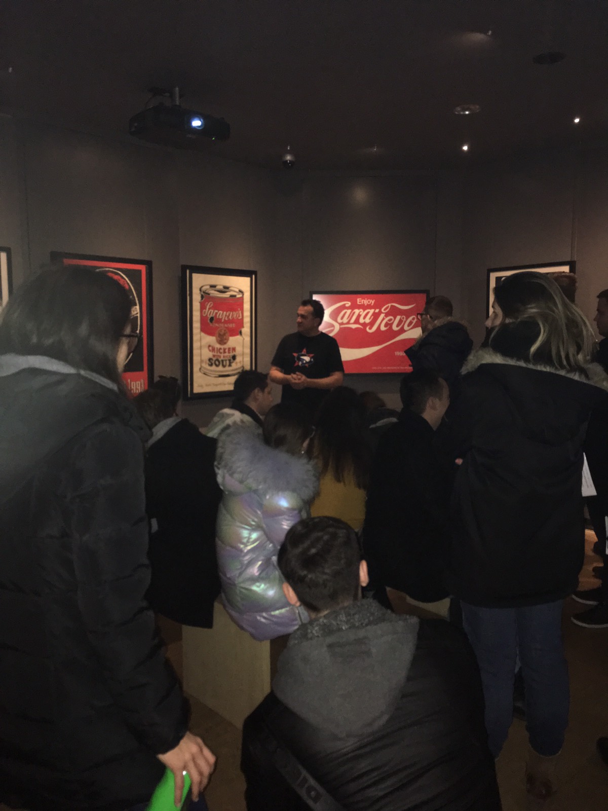 Uporedo s navedenim, realizirana je i kreativna radionica Podijelimo znanje: Iz druge perspektive, čiji programski okvir studentima Muzičke akademije želi obezbijediti kreativno okruženje za prepoznavanje i produbljivanje njihovih ideja i interesa izvan akademskim programom zadatog prostora, a kroz saradnju s profiliranim umjetnicima i naučnicima s drugih srodnih institucija (akademija umjetnosti, fakulteta, instituta za umjetničko/naučno istraživanje, umjetničkih galerija, medijskih i izdavačkih kuća). Jedan od ciljeva je i potaknuti studente na kritičko, kreativno mišljenje o pozicijama umjetnika, teoretičara umjetnosti i pedagoga u društvu, kao onih koji ukazuju na nužne promjene, iniciraju ih i ulažu u njihovu realizaciju, dok pritom brižljivo čuvaju općeljudske vrijednosti na kojima društvo počiva i odgovorno ih prenose novim generacijama. Stoga smo u ovom izdanju kreativne radionice Podijelimo znanje 2019/20.: Iz druge perspektive pozvali prof. mr. Bojana Hadžihalilovića, grafičkog dizajnera i jednog od idejnih tvoraca antologijskog djela Greetings from Sarajevo 1993, koje je i bilo u fokusu njegovog predavanja namijenjenog studentima MAS 27. 11. 2019. godine. Predavanje je održano u prostoru Galerije 11/07/95, koja, pored toga što već godinama zauzima suverenu poziciju u kulturi sjećanja na genocid u Srebrenici u julu 1995. godine, snažno odašiljući poruke o pogubnosti rata, pogubnosti ravnodušja spram njega i šutnje i zaborava nakon njega, nudi stalnu postavku navedenog Hadžihalilovićevog djela. Uvod u samo predavanje kroz obilazak Galerije kuratorice Anele Hakalović ukazao je na jedan od najvažnijih konteksta sagledavanja umjetničkog djela – njegove uloge u bosanskohercegovačkom društvu.