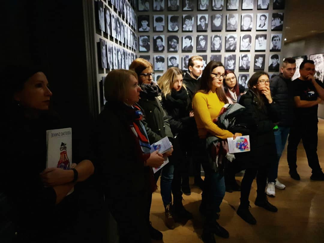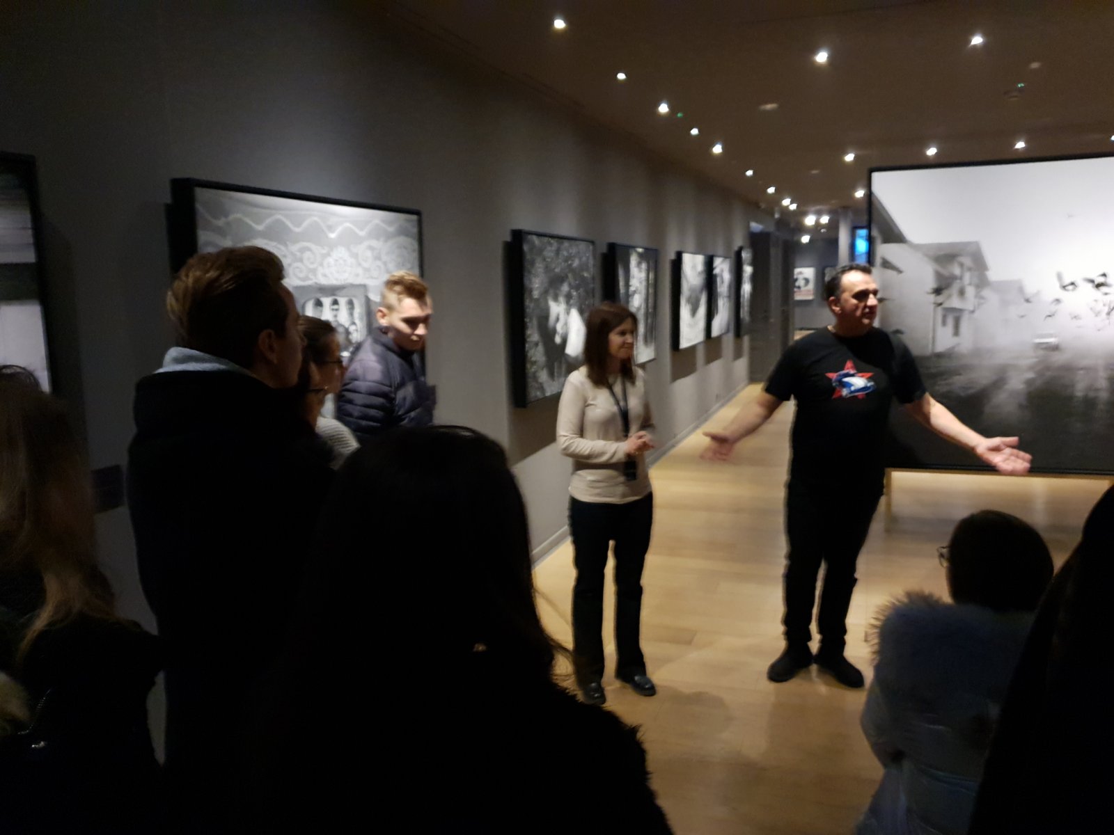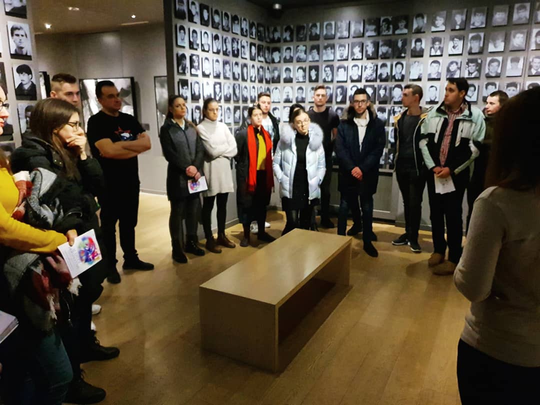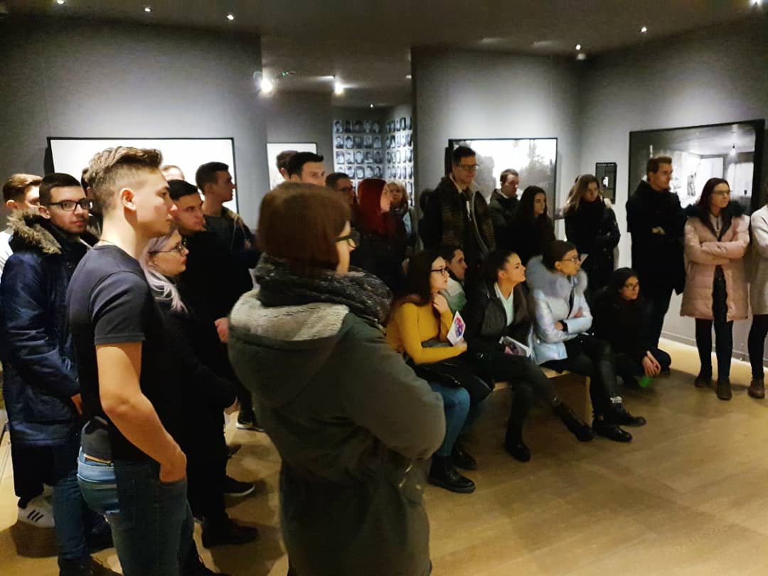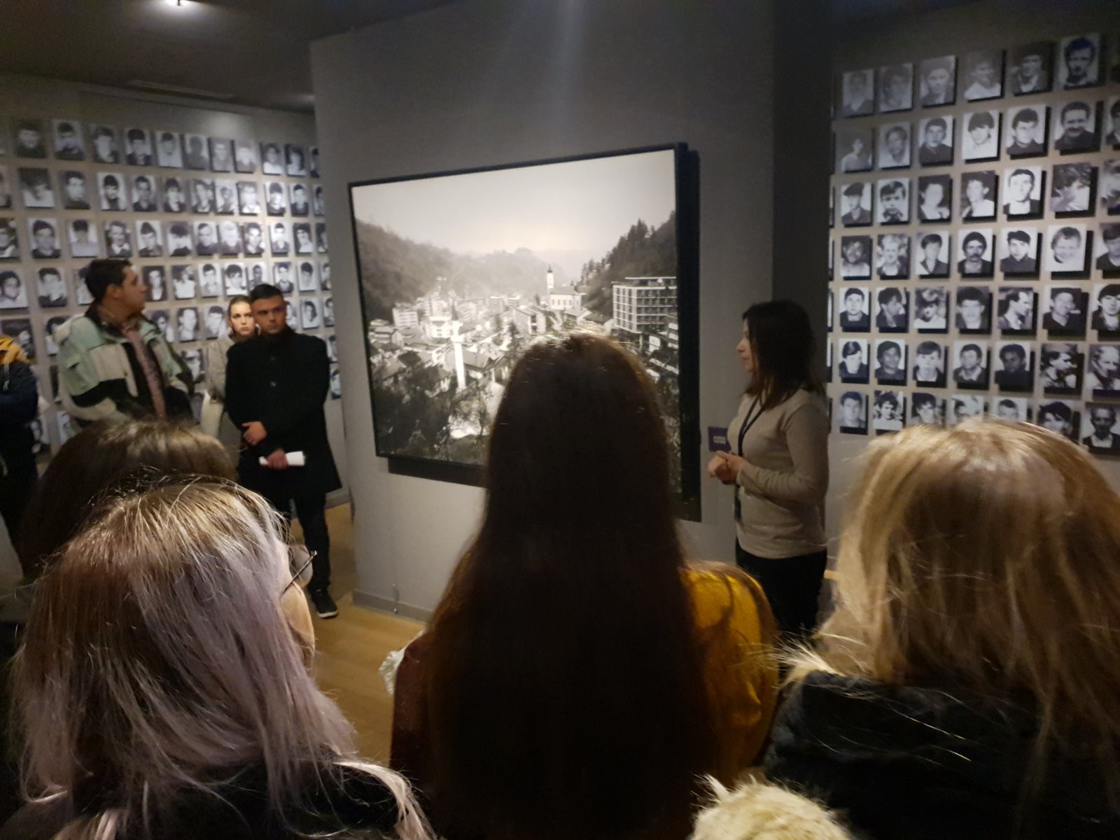 Uporedo s navedenim, realizirana je i kreativna radionica Podijelimo znanje: Iz druge perspektive, čiji programski okvir studentima Muzičke akademije želi obezbijediti kreativno okruženje za prepoznavanje i produbljivanje njihovih ideja i interesa izvan akademskim programom zadatog prostora, a kroz saradnju s profiliranim umjetnicima i naučnicima s drugih srodnih institucija (akademija umjetnosti, fakulteta, instituta za umjetničko/naučno istraživanje, umjetničkih galerija, medijskih i izdavačkih kuća). Jedan od ciljeva je i potaknuti studente na kritičko, kreativno mišljenje o pozicijama umjetnika, teoretičara umjetnosti i pedagoga u društvu, kao onih koji ukazuju na nužne promjene, iniciraju ih i ulažu u njihovu realizaciju, dok pritom brižljivo čuvaju općeljudske vrijednosti na kojima društvo počiva i odgovorno ih prenose novim generacijama. Stoga smo u ovom izdanju kreativne radionice Podijelimo znanje 2019/20.: Iz druge perspektive pozvali prof. mr. Bojana Hadžihalilovića, grafičkog dizajnera i jednog od idejnih tvoraca antologijskog djela Greetings from Sarajevo 1993, koje je i bilo u fokusu njegovog predavanja namijenjenog studentima MAS 27. 11. 2019. godine. Predavanje je održano u prostoru Galerije 11/07/95, koja, pored toga što već godinama zauzima suverenu poziciju u kulturi sjećanja na genocid u Srebrenici u julu 1995. godine, snažno odašiljući poruke o pogubnosti rata, pogubnosti ravnodušja spram njega i šutnje i zaborava nakon njega, nudi stalnu postavku navedenog Hadžihalilovićevog djela. Uvod u samo predavanje kroz obilazak Galerije kuratorice Anele Hakalović ukazao je na jedan od najvažnijih konteksta sagledavanja umjetničkog djela – njegove uloge u bosanskohercegovačkom društvu.