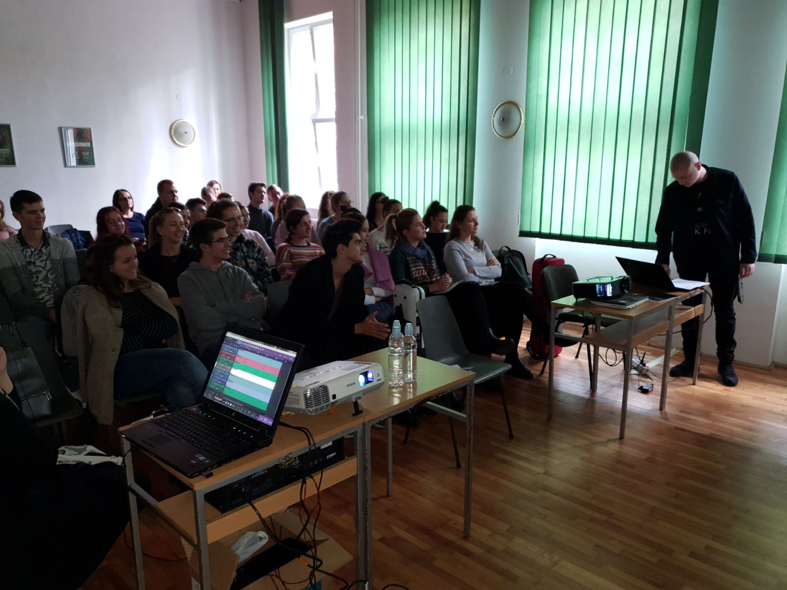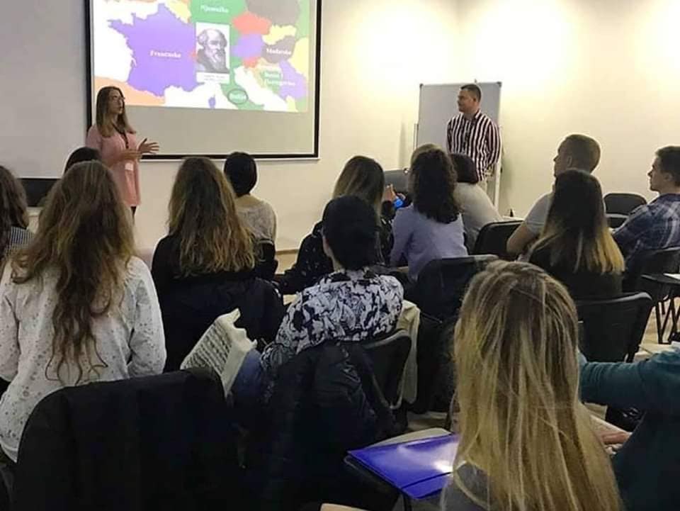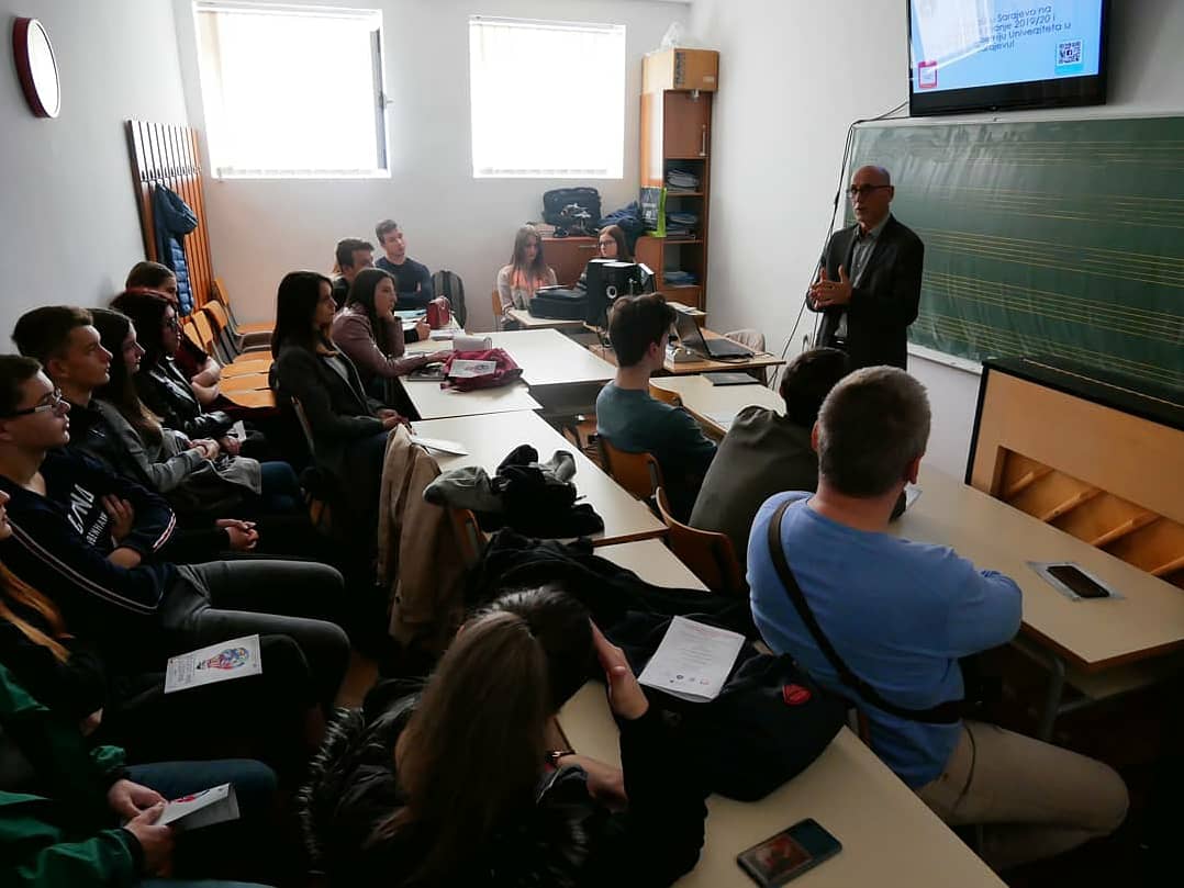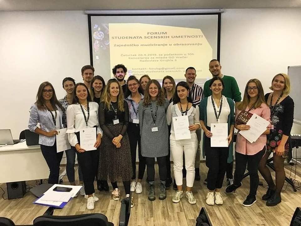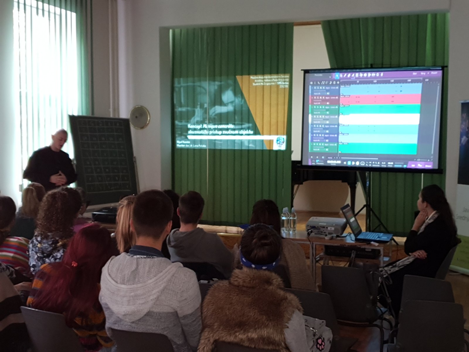 Novu školsku godinu započeli smo realizacijom prvog dijela programskog okvira ciklusa pod nazivom kreativna radionica Podijelimo znanje 2019/20. – studenti MAS u gostima. Radionica je uspješno provedena u periodu od septembra do novembra 2019. godine posjetama Drugom međunarodnom forumu studenata scenskih umetnosti u Beogradu, Srednjoj muzičkoj školi I i II stupnja i Srednjoj glazbenoj školi Ivana pl. Zajca u Mostaru, te Srednjoj muzičkoj školi u Zenici. Cilj programa ove radionice, čije će naredno izdanje biti realizirano u martu i aprilu 2020. godine posjetama Bihaću, Banjoj Luci i Novom Travniku, jeste unaprijediti saradnju s kolegama profesorima i učenicima muzičkih akademija i srednjih muzičkih škola u drugim gradovima Bosne i Hercegovine i inozemstvu, upoznati ih s aktivnostima projekta, te razmijeniti s njima znanja i iskustva o oblastima muzičkog djelovanja. Drugi forum studenata scenskih umetnosti, u organizaciji studenata Fakulteta muzičke umetnosti Univerziteta umetnosti u Beogradu, održan je u Kancelariji za mlade Vračar u Beogradu 26. 09. 2019. godine. Svojim temama iz oblasti solfeggia i metodike muzičke nastave predstavili su se studenti Odsjeka za muzičku teoriju i pedagogiju Silvana Jakupović (V godina), Ana-Marija Tomić (IV godina) i Damir Dajić (V godina). Mostarsko izdanje radionice, koje se 19. 11. 2019. održalo u prostorijama Srednje glazbene škole Ivana pl. Zajca u Mostaru, ujedinjujući učenike obiju mostarskih srednjih muzičkih/glazbenih škola, predvodio je voditelj projekta red. prof. dr. Refik Hodžić, koji je u okviru jednosatnog predavanja govorio o metodičkom diskursu u nastavi harmonije. Pratile su ga studentice Odsjeka za muzičku teoriju i pedagogiju MAS Silvana Jakupović, Ana-Marija Tomić i Jelena Stipić (IV godina), te teorijski (Jakupović) i praktično predstavile programske okvire ciklusa razmatranjem problema muzičke teorije i pedagogije poput analitičkog pristupa Petoj simfoniji L. van Beethovena (Stipić) ili mogućnosti interaktivne aplikacije predmeta muzičke teorije i pedagogije u formi mjuzikla (Tomić). Na radionici u Zenici 21. 11. 2019. godine predstavili su se asistentica Odsjeka za muzičku teoriju i pedagogiju Ena Plakalo, MA, izlaganjem o viziji i dosadašnjim iskustvima ciklusa, te studenti Odsjeka za muzičku teoriju i pedagogiju Damir Dajić, kao i Odsjeka za muzikologiju i etnomuzikologiju Rijad Kaniža (IV godina) i Zanin Berbić (V godina), koji su pokazali kreativne prezentacije svojih ideja o muzičkim fenomenima poput modulacije u solfeggiu (Dajić), konceptu Musique concrète (Kaniža) ili improvizaciji u sevdalinci (Berbić).