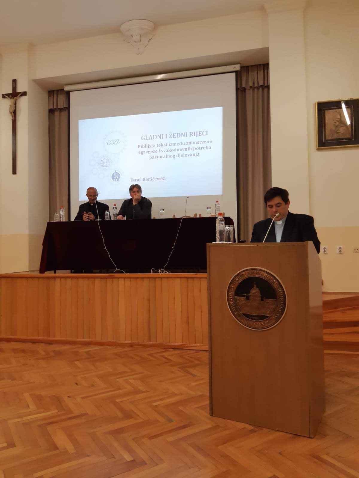 Nakon ta dva predavanja uslijedila je kratka rasprava te pauza, a onda dva predavanja. Prvo je imao doc. dr. sc. Taras Barščevski s KBF-a u Zagrebu. Svoje predavanje je naslovio „Gladni i žedni Riječi: Biblijski tekst između znanstvene egzegeze i svakodnevnih potreba svakodnevnog djelovanja“. Govorio je o važnosti promicanja biblijskog apostolata, tj. o važnosti Biblije u pastoralnom djelovanju. U tom kontekstu je govorio o osnutku i djelovanju Biblijskog instituta Katoličkog bogoslovnog fakulteta Sveučilišta u Zagrebu i njegovoj ulozi u promicanju biblijskog pastorala. Na kraju predavanja je predstavio projekt Biblijskog instituta, a to je digitalizacija hrvatske biblijske bibliografije, koji je u izradi.