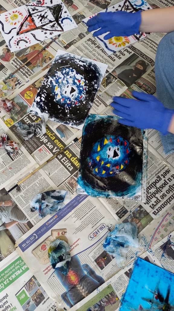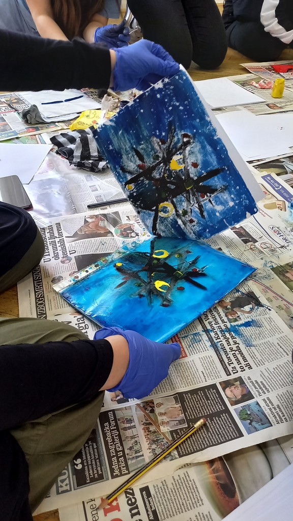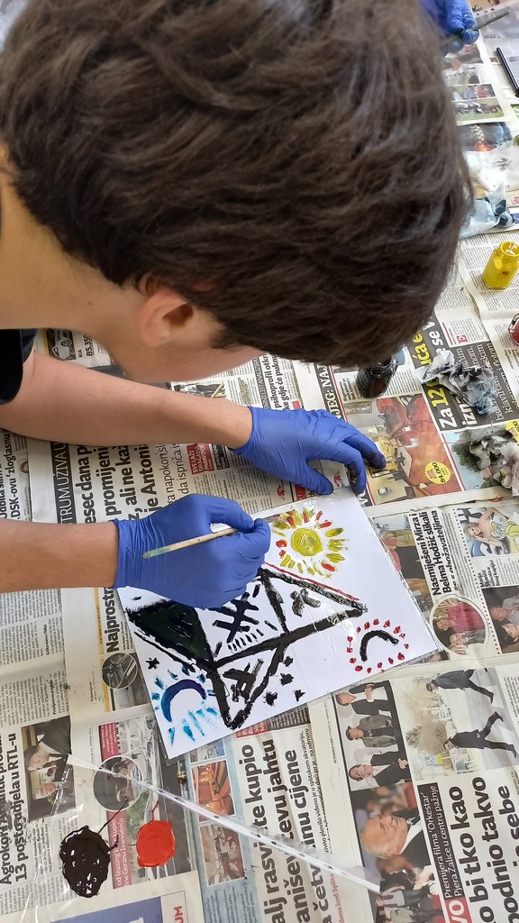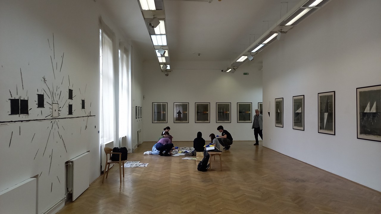 Likovno-edukativna radionica se održala u ponedjeljak 22.05.2023. godine, u terminu od 13:30 do 14:30 sati, u sklopu izložbe Iskorak u mjestu, uvaženog stvaraoca i umjetnika Mirsada Konstantinovića, koja je trenutno postavljena u Galeriji Bosne i Hercegovine. Važno je naglasiti da su učenici/e osnovne škole JU OŠ Hamdija Kreševljaković, u sklopu svoje likovne sekcije, a pod vodstvom profesora Zekerijaha Nalića, uzeli/e učešće u navedenoj likovno-edukativnoj radionici.