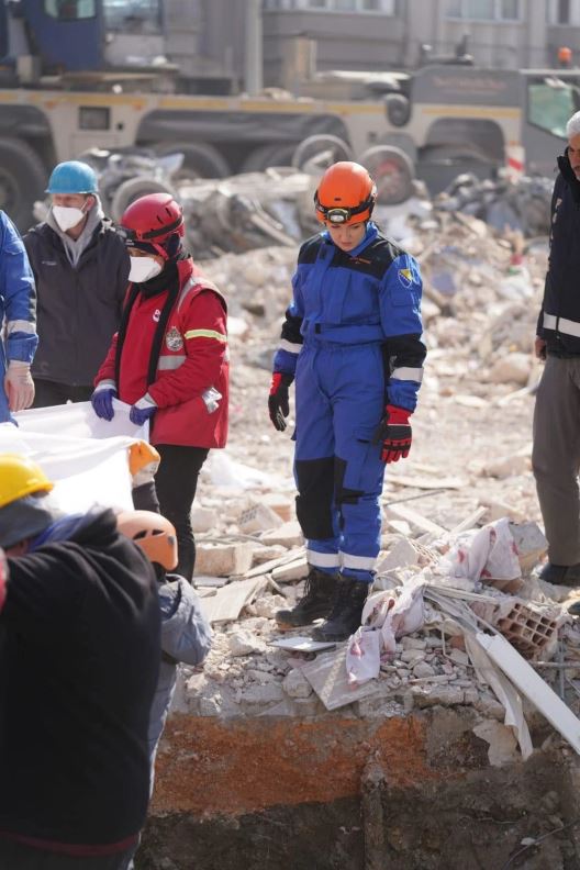 "Trenutno se nalazim u pokrajini Hatay, na jugu Turske, gdje se prije nekoliko dana dogodila ogromna katastrofa uzrokovana razornim zemljotresima. Grad u kojem je živjelo skoro 2 miliona stanovnika, potpuno je pust, svi ljudi su iseljeni ili su pod ruševinama. Prizor je nestvaran i nema riječi kojima bi se to moglo opisati. Radim direktno na terenu, na ruševinama, sa svojima kolegama kao pripadnik Federalne uprave civilne zaštite, kao medicinska podrška i spasioc. Na mjestu u kojem nema obližnjih zgrada, a radi vlastite sigurnosti, podignut je kamp sa šatorima i potrebnom opremom za spavanje, grijalicama, cisternama sa vodom, agregatima, vrećama za spavanje... Nažalost, posljedice razornog zemljotresa su katastrofalne, puno je žrtava, a među njima ima i djece. To je jedna specifična situacija, gdje ja prvo ljudski ne mogu biti imuna na sve što vidim, a onda kao i svaki moj kolega spasioc moramo dati sve od sebe. Teško je vidjeti ljude, porodicu koja čeka da se izvuče njihovo dijete, suprug ili supruga. To su scene koje je teško gledati, osim toga što je fizički naporno, psihički je još teže. Jedna od mnogobrojnih scena koje ću zasigurno cijeli život pamtiti, je otkopavanje ženske osobe, majke, koja je zagrlila svoje dvoje djece, sina i kćerku, i pokušala ih zaštiti od onoga što je ubrzo uslijedilo. Mnogo je teško kad pronađete dječije bilježnice u koje je do jučer to dijete pisalo domaći zadatak, kada pronađete dječije igračke, takve scene ostaju urezane duboko u sjećanje. Na terenu sam skupa sa svojim kolegama s posla, prisutna 24 sata, radimo u smjenama, pružam svu pomoć koju mogu kao medinska podrška ugroženom stanovništvu i kao spasioc. Dosta preživjelih se nalazi u blizinu, i njima je također često potrebna pomoć, jer su iznemogli i čekaju da se njihovi najmiliji iskopaju ispod ruševina. Turska vojska i policija su 24 sata prisutni na terenu i osjećam se sigurno.