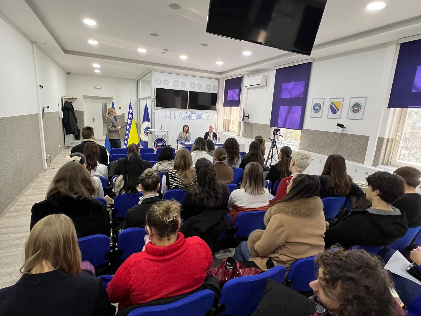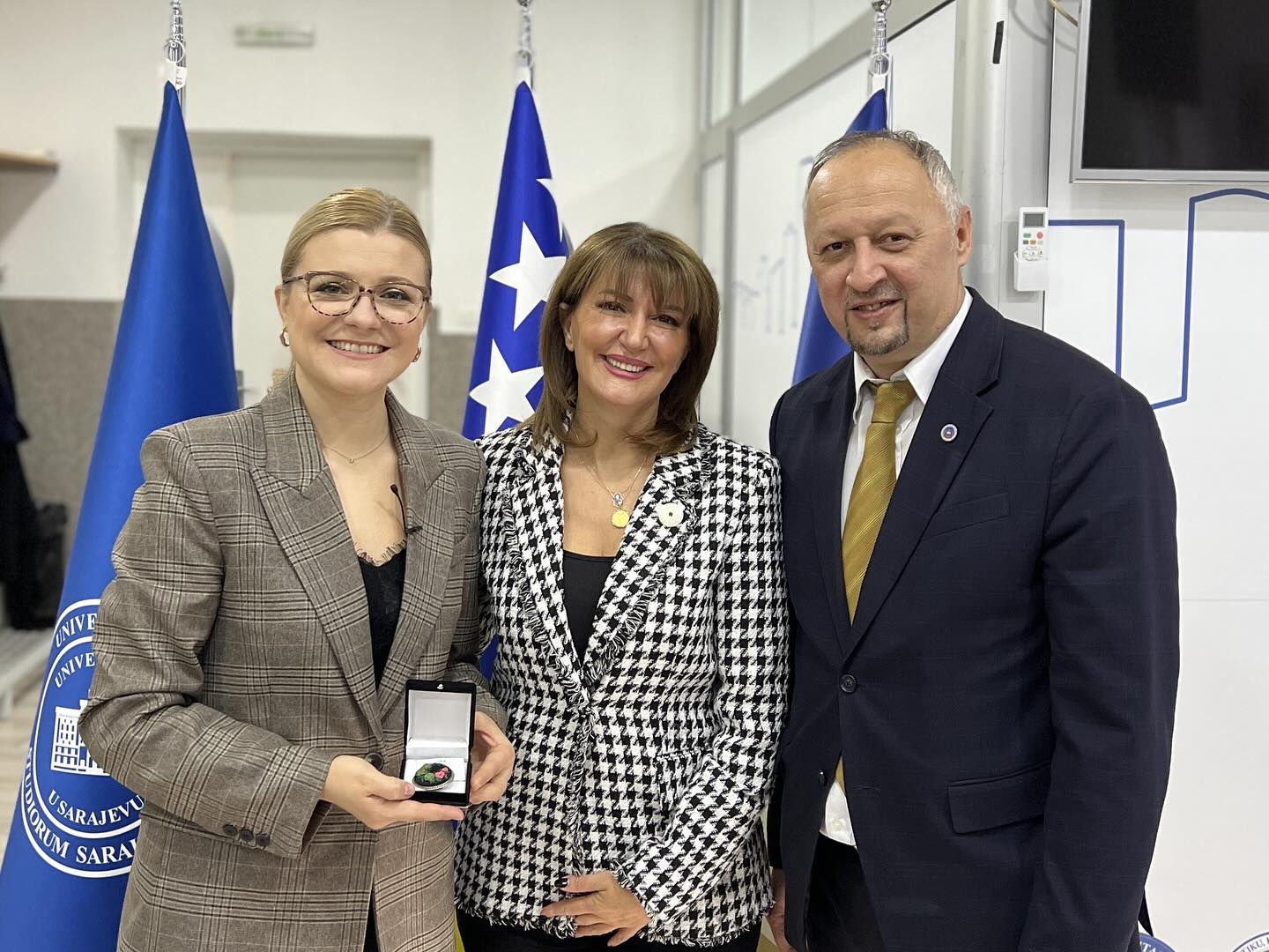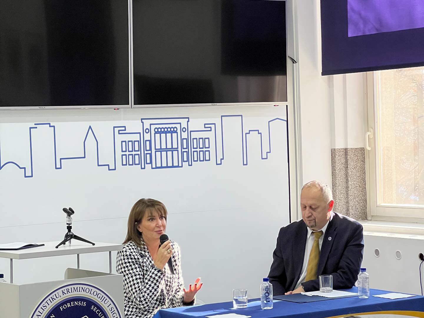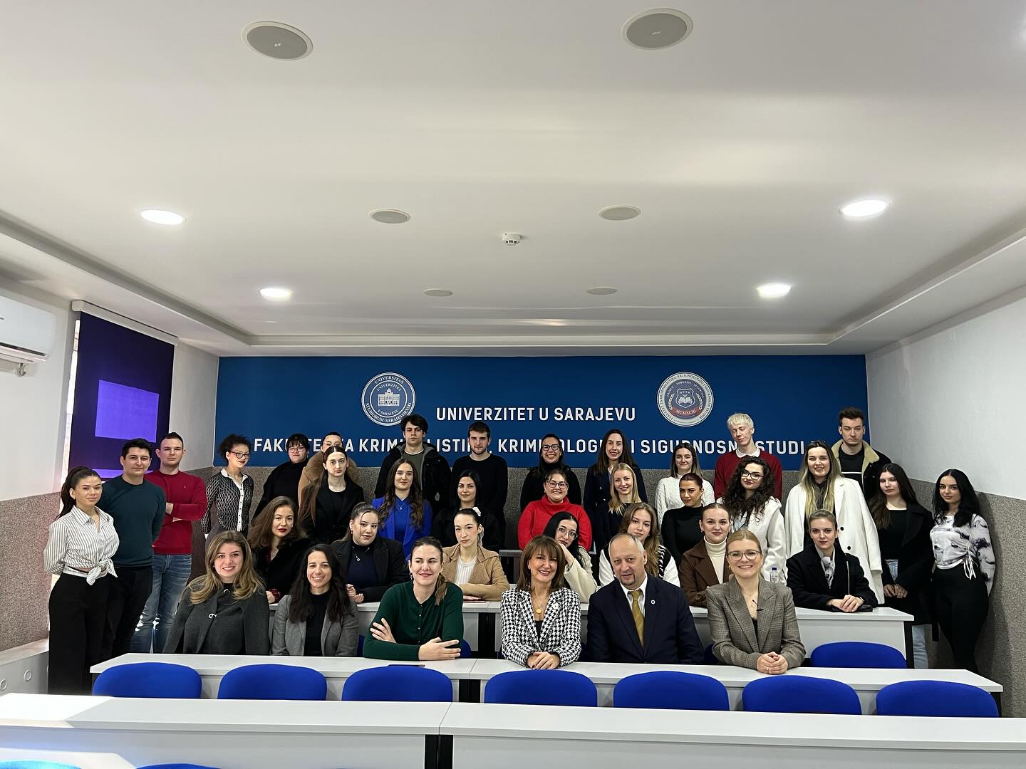 Fakultet za kriminalistiku, kriminologiju i sigurnosne studije imao je izuzetnu čast ugostiti Atifete Jahjagu, prvu predsjednicu Kosova i najmlađu izabranu predsjednicu u jugoistočnoj Evropi. Tokom posjete, Jahjaga je održala predavanje posvećeno ulozi žena u sigurnosnim strukturama i procesima donošenja odluka, s posebnim naglaskom na agendu Žene, mir i sigurnost. Istakla je kako ravnopravno učešće žena nije samo pitanje jednakosti, već i ključni faktor stabilnosti i sigurnosti društava. Podijelila je svoja iskustva iz vremena dok je bila na čelu Kosova, kao i iz svoje karijere u sigurnosnom sektoru, gdje je obnašala dužnost zamjenice direktora Kosovske policije, postavši žena s najvišim činom u sigurnosnim strukturama jugoistočne Evrope. Posebno je naglasila važnost UN-ove Rezolucije 1325, koja je omogućila da ženska perspektiva postane integralni dio mirovnih i sigurnosnih procesa. Studenti i prisutni su imali priliku postavljati pitanja i diskutovati o izazovima i mogućnostima jačanja uloge žena u sigurnosnom sektoru, kako u Bosni i Hercegovini, tako i širom regije. Zahvaljujemo se predsjednici Jahjagi na dolasku i inspirativnom predavanju, kao i doc. dr. Nermi Halilović-Kibrić na doprinosu dinamičnoj i sadržajnoj diskusiji.