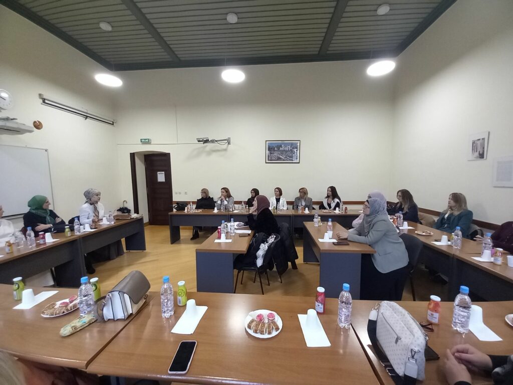 Na Fakultetu islamskih nauka gošće su dočekale prof. dr. Zehra Alispahić i viša asistentica Azra Kulenović. Nakon kraćih obraćanja i upoznavanja sa radom Fakulteta, gošćama su se obratile i univerzitetske profesorice Fahira Fejzić-Čengić, Azra Zaimović, Amila Svraka-Imamović i Selvira Draganović.