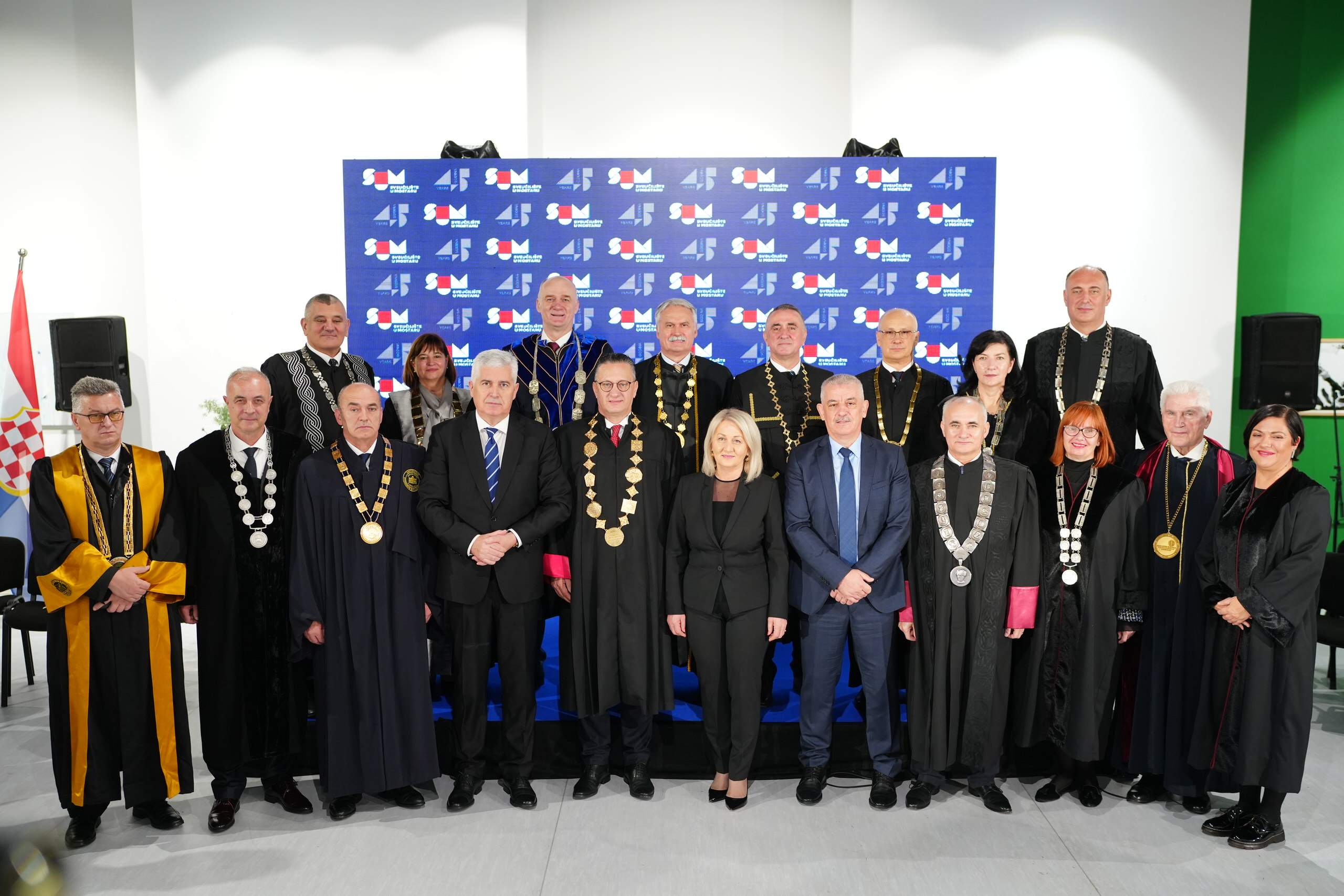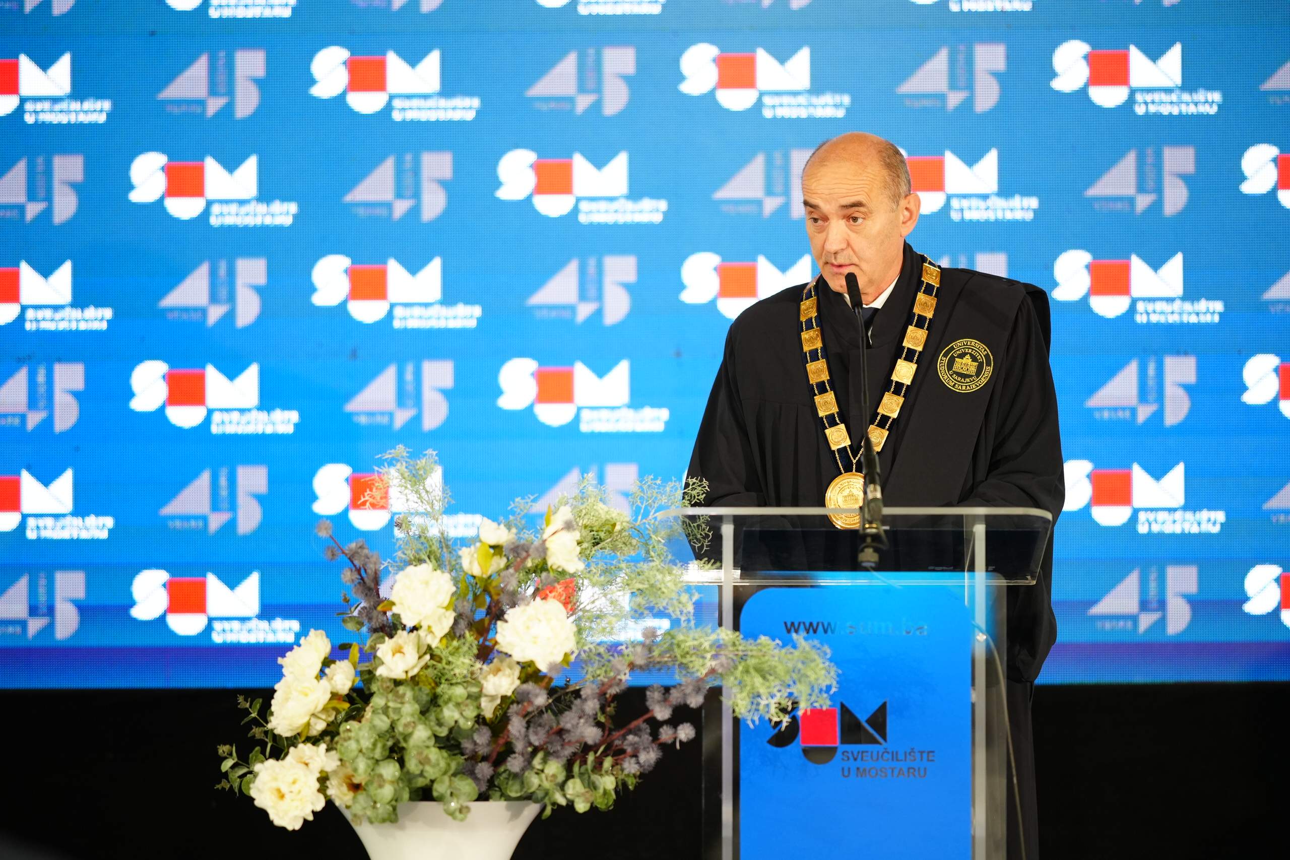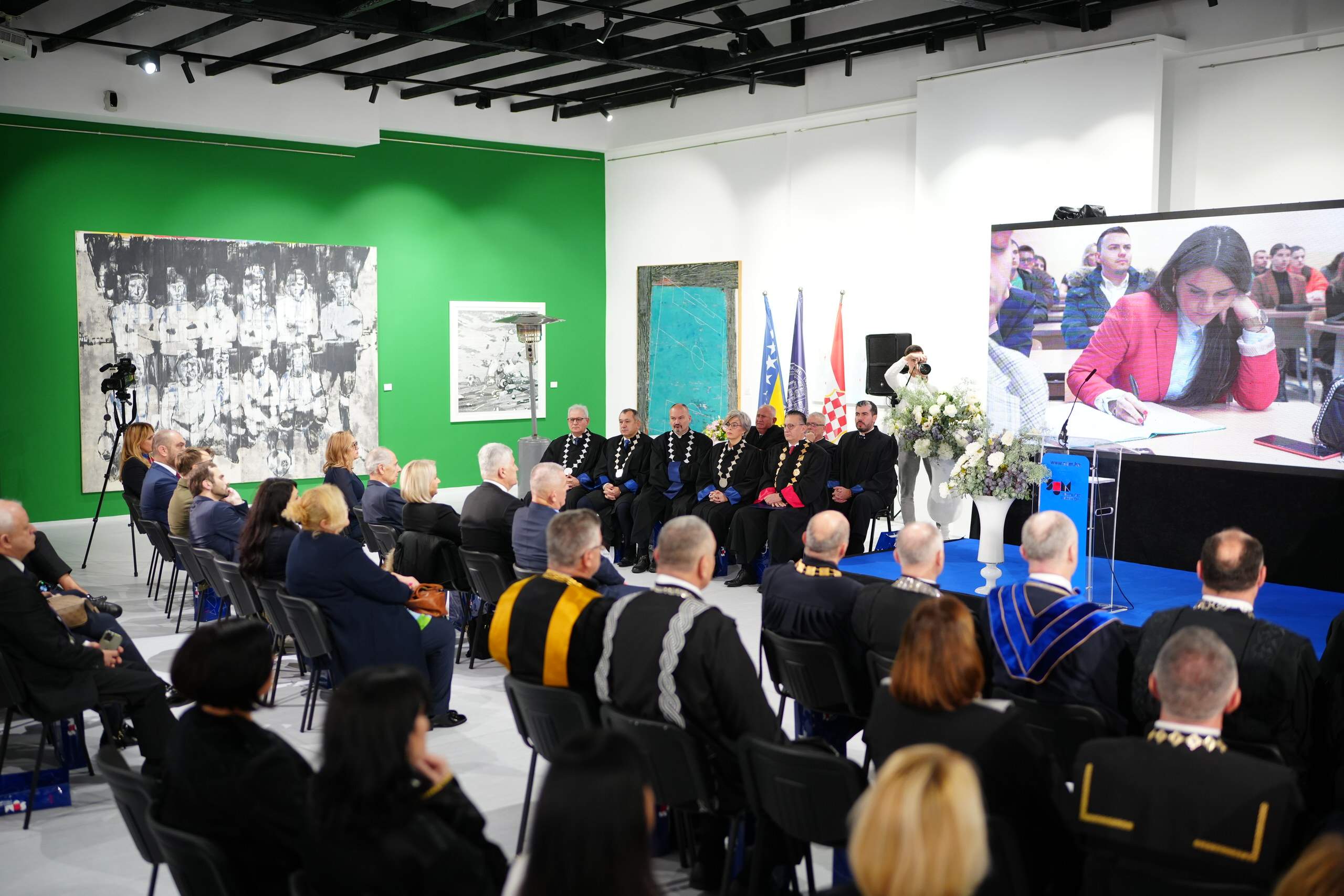 Na svečanosti su govorili u ime domaćina prof. dr. Zoran Tomić, rektor Sveučilišta u Mostaru, u ime Rektorske konferencije/zbora BiH i u ime Univerziteta u Sarajevu rektor prof. dr. Rifat Škrijelj, u ime Rektorskog zbora Republike Hrvatske i u ime Sveučilišta u Zagrebu rektor prof. dr. Stjepan Lakušić, te u ime zvaničnika Bosne i Hercegovine gospodin Dragan Čović, predsjednik Hrvatskog narodnog sabora BiH i drugi zamjenik predsjedavajućeg Doma naroda Parlamentarne skupštine BiH.