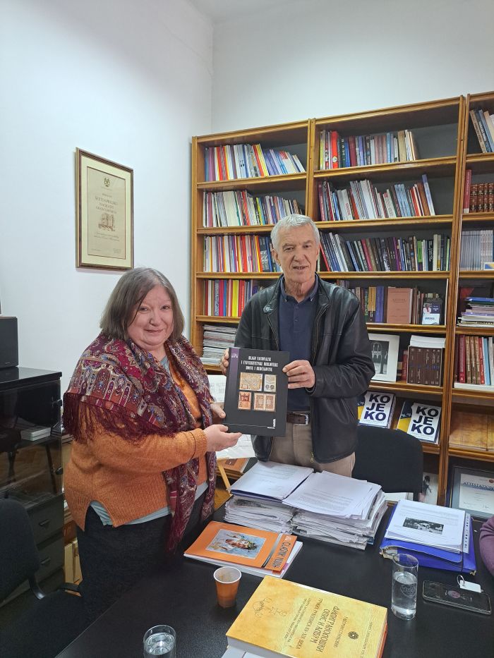 Dr. Ovčina, podržavši ovakvu ideju, darovao je gošćama nekoliko recentnih izdanja NUBBiH, i pozvao ih u obilazak Specijalnih zbirki NUBBiH, gdje su, uz asistenciju Teufika Osmanovića, voditelja Grafičke zbirke, pogledale i izloženu građu koja je dio Specijalnih zbirki NUBBiH.