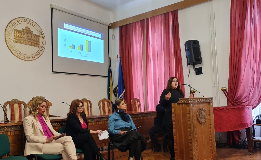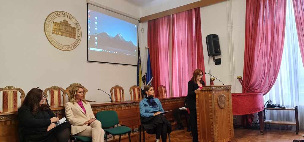Panel diskusija je započela uvodnim obraćanjem prof. dr. Sarine Bakić, koja je svojim izlaganjem odgovorila na pitanje šta danas predstavlja 8.mart. „Iako svaki dan treba insistirati na ravnopravnosti polova, današnji dan je važan datum u historiji i treba nam, upravo njegovim obilježavanjem, a ne slavljenjem/proslavljanjem, poslužiti da se podsjetimo na šta se ovim datumom zapravo ukazuje“,, istakla je profesorica Bakić, te dodala: „Nasuprot proklamovanoj ideji emancipacije, ideji koja se tretira kao simbol borbe žena na ljudsko dostojanstvo i ekonomsku nezavisnost, sam čin osmomartovskog darivanja predstavlja unižavanje borbe za prava žena i destrukciju ustrajnog prkosa protiv društvene nejednakosti i diskriminacije, te za bosanskohercegovačko društvo važno naglasiti, protiv nasilja nad ženama i djecom“, naglasila je profesorica Bakić.