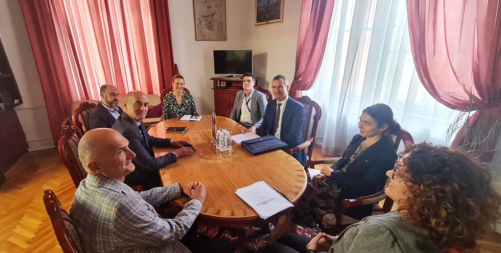 Rektor Univerziteta u Sarajevu prof. dr. Rifat Škrijelj danas je ugostio Bernharda Fabianeka iz Evropske komisije, višeg eksperta Generalnog direktorata za istraživanje i inovacije, i Gianlucu Vanninija, šefa operacija Odjela za društveni razvoj, civilno društvo i prekograničnu saradnju Delegacije EU u Bosni i Hercegovini. Sastanku su prisustvovali i prof. dr. Tarik Zaimović, prorektor za finansije, prof. dr. Mirza Dautbašić, prorektor za naučnoistraživački rad, prof. dr. Maja Arslanagić-Kalajdžić, direktorica Centra za istraživanje i razvoj i mr. Nina Begović, šefica Službe za naučnoistraživački rad.