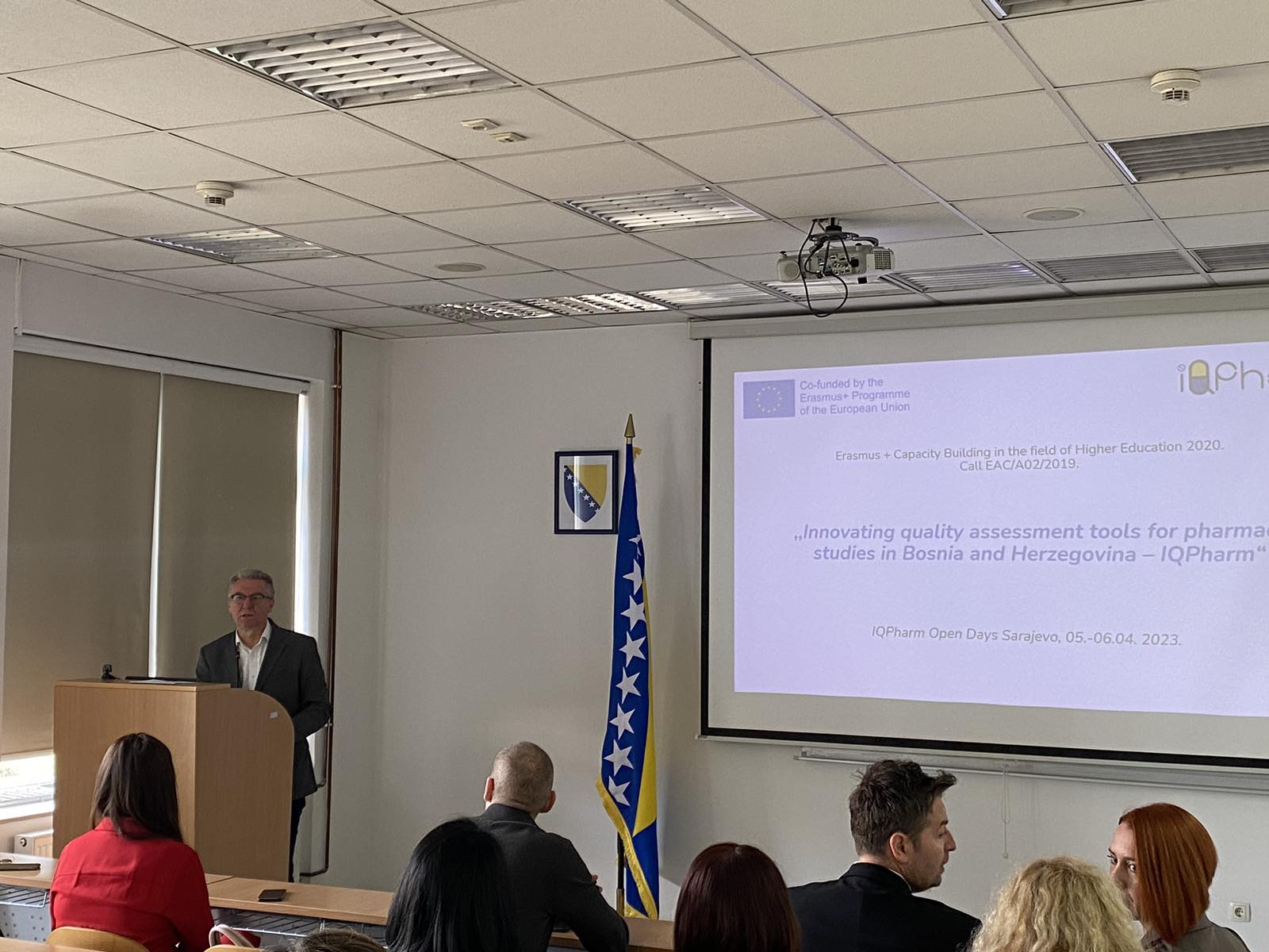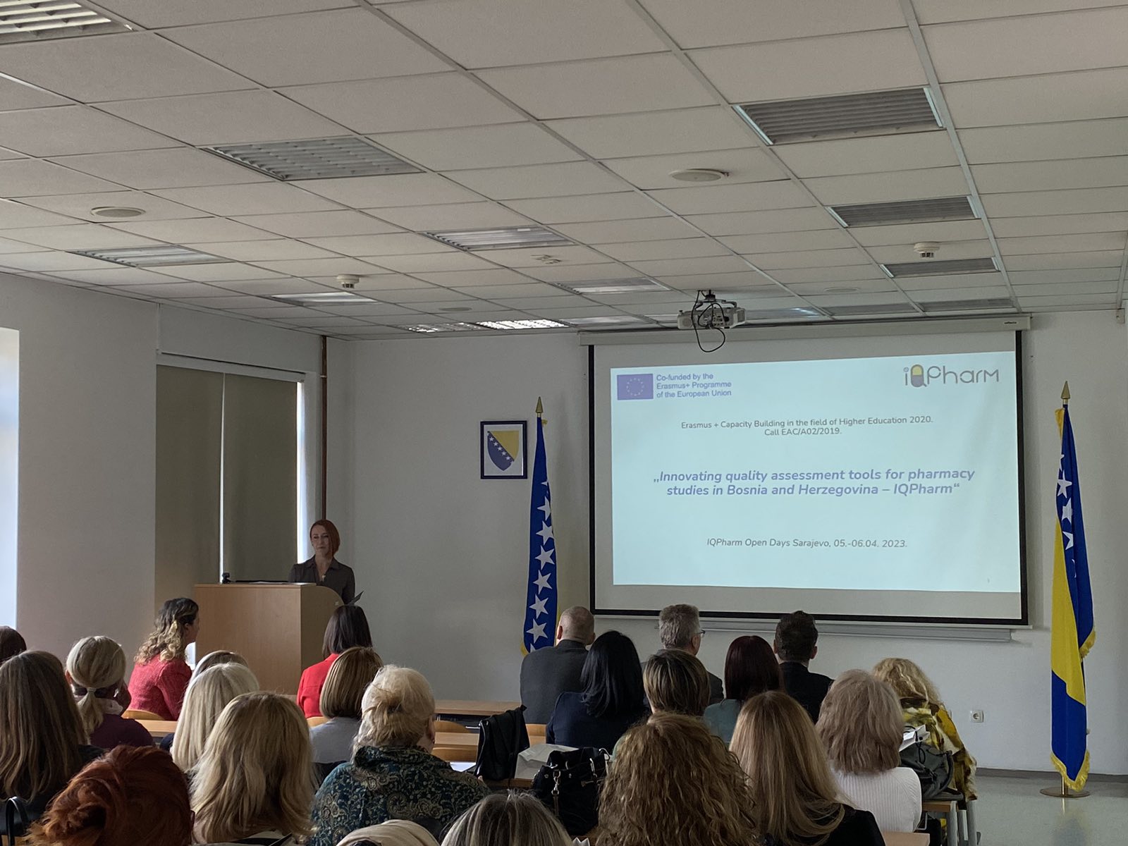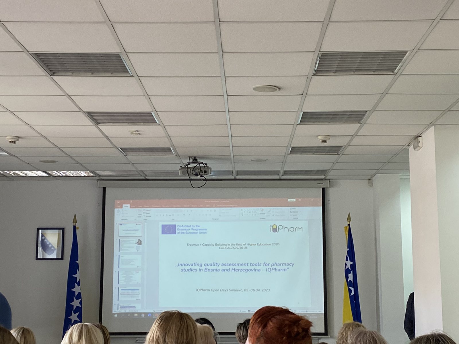 Farmaceutski fakultet Univerziteta u Sarajevu 06. aprila 2023. godine bio je domaćin Otvorenih dana Erasmus+ CBHE projekta "Innovating quality assessment tools for pharmacy studies in Bosnia and Herzegovina - IQPharm". Na sesiji prisustvovalo je 50 učesnika u prostorijama Fakulteta i 150 online, preko Zoom platforme, među prisutnima bili su i učesnici partnerskih institucija i stručnih tijela magistara farmacije. Glavni od ciljeva IQPharm je poboljšanje kavlitete studija farmacije u Bosni i Hercegovini uključujući poboljšanje studentske stručne prakse u apotekama.