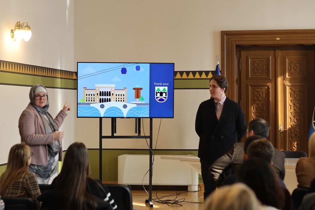 Prijem, stručnu prezentaciju i obilazak Vijećnice organizirala je Gradska služba za održivi razvoj, naglašavajući institucionalni pristup Grada Sarajeva planiranju i implementaciji mjera održivosti na lokalnom nivou. Tokom susreta, pomoćnica gradonačelnika Nermina Suljević i projekt menadžer Derviš Hadžimuhamedović učestvovali su u predstavljanju projekata, politika, mjera i izazova s kojima se Grad Sarajevo suočava u kontekstu klimatske otpornosti, održivog razvoja i zelene tranzicije.