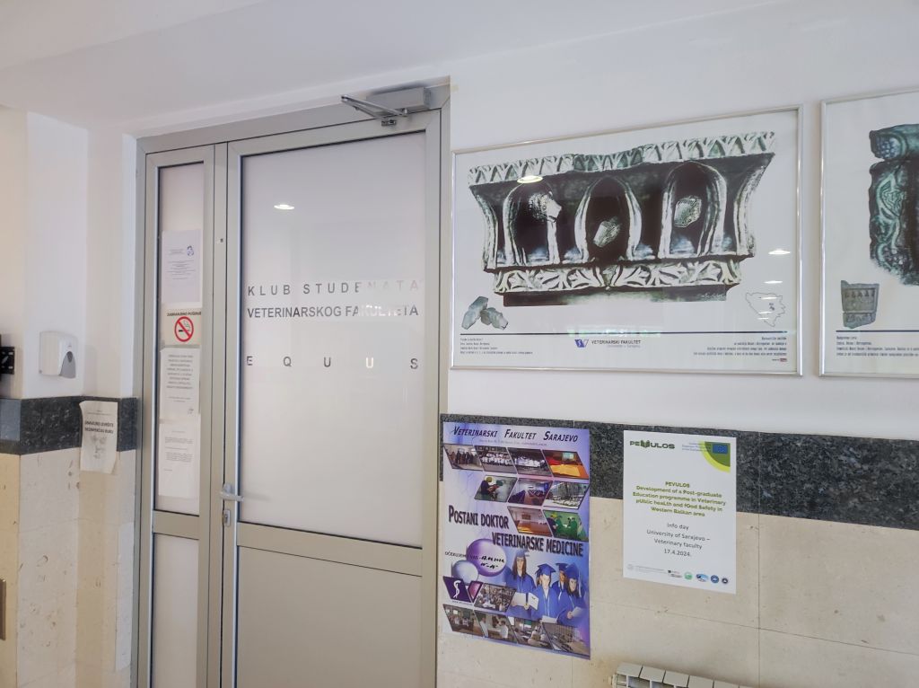 Info dan je održan u okviru Dana otvorenih vrata Veterinarskog fakulteta, gdje su članovi tima Univerziteta u Sarajevu PEVULOS projekta putem vizuelne prezentacije, informativnih letaka i kroz direktne razgovore sa zainteresiranim posjetiteljima predstavili projekat, a posebno negov planirani ishod – novi postdiplomski studijski program iz oblasti Veterinarskog javnog zdravstva i sigurnosti hrane, koji je u pripremi, a planiran je za prijavu i upis kandidata u akademskoj godini 2024/2025. Ovaj inovativni studijski program razvijen u saradnji sa partnerima iz EU, u trajanju od 2 godine sa nastavom na engleskom jeziku će za prvu generaciju polaznika biti izveden kroz sam projekat. Više informacija o novom studiju možete dobiti od koordinatora projekta ispred Univerziteta u Sarajevu prof. dr. Sabine Šerić-Haračić (sabina.seric-haracic@vfs.unsa.ba).