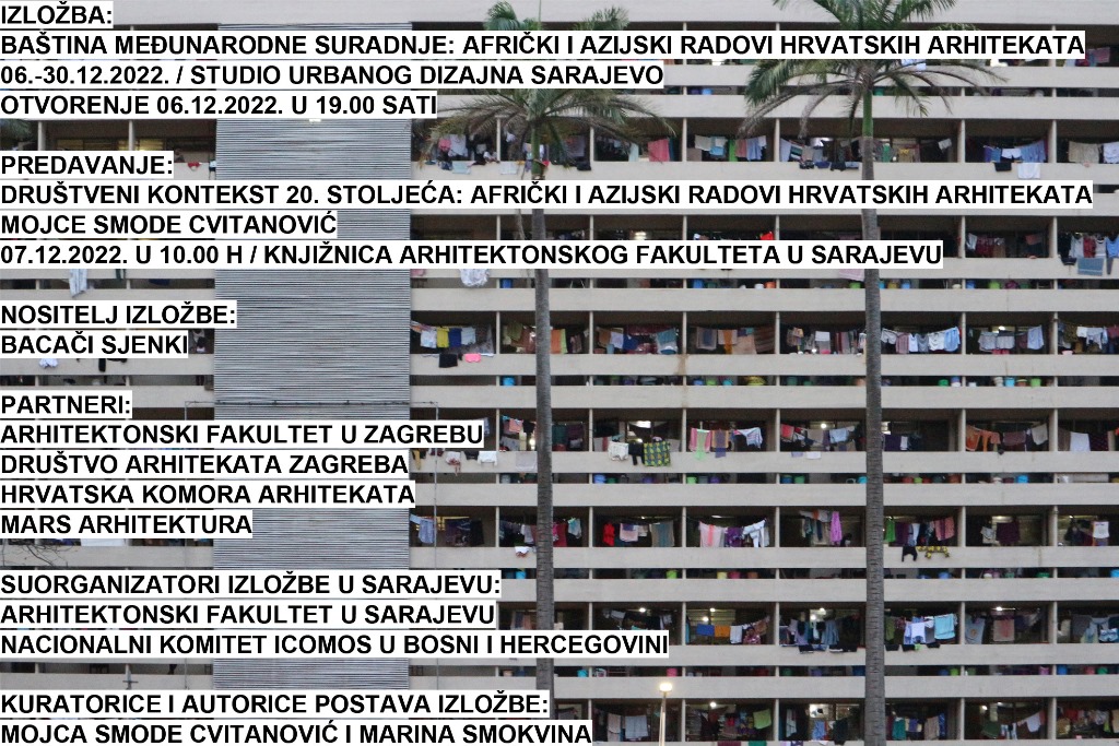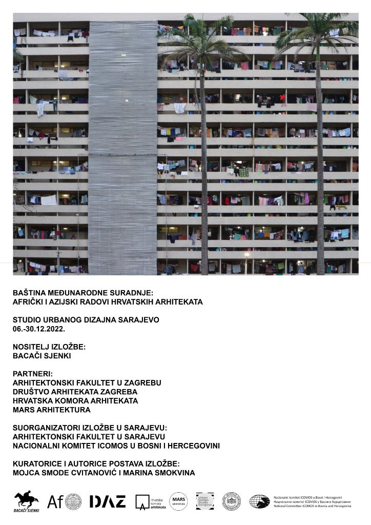 Nacionalni komitet ICOMOS u Bosni i Hercegovini zajedno sa Arhitektonskim fakultetom Univerziteta u Sarajevu domaćin je izložbe BAŠTINA MEĐUNARODNE SURADNJE: AFRIČKI I AZIJSKI RADOVI HRVATSKIH ARHITEKATA. Izložba je realizovana u okviru umjetničke platforme Bacači Sjenki iz Zagreba. Autorice postavke su Mojca Smode Cvitanović i Marina Smokvina.