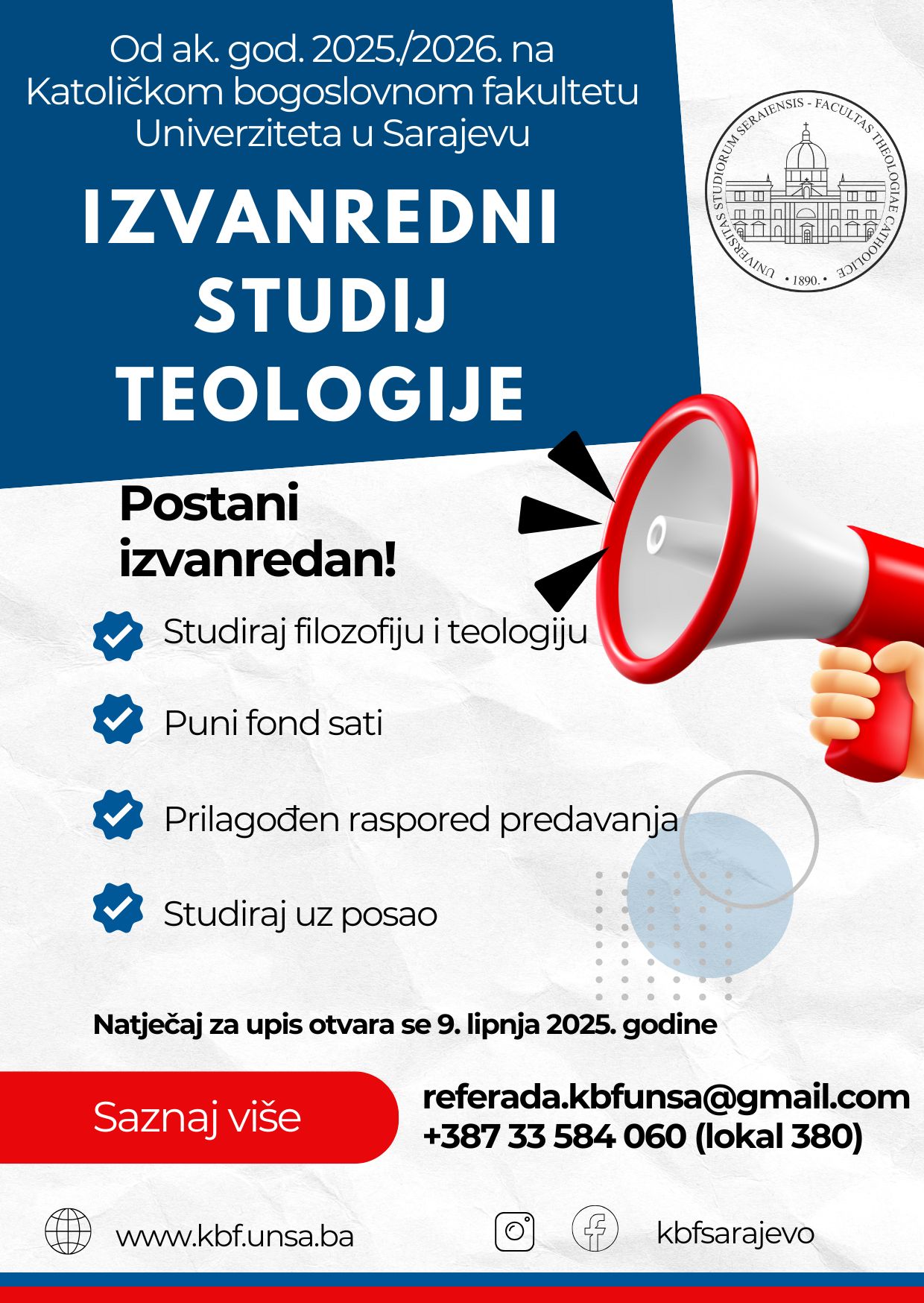 Izvanredni integrirani filozofsko-teološki studij na Katoličkom bogoslovnom fakultetu UNSA