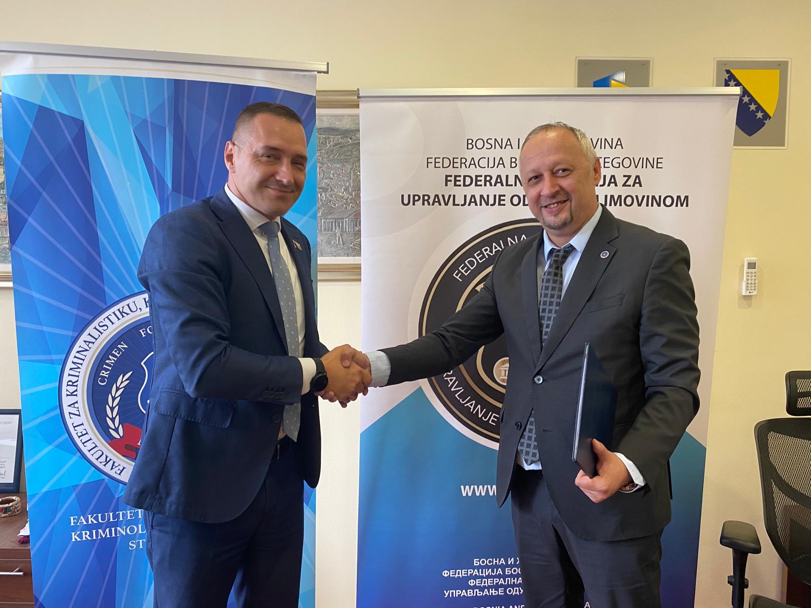 Potpisan je Sporazum o saradnji između Federalne agencije za upravljanje oduzetom imovinom i Fakulteta za kriminalistiku, kriminologiju i sigurnosne studije Univerziteta u Sarajevu. Sporazum ima za cilj jačanje institucionalne saradnje, akademske podrške i unapređenje nastavnog procesa kroz uključivanje studenata u stručnu i terensku praksu. Dekan Fakulteta prof. dr. Jasmin Ahić istakao je važnost naučnoistraživačkog rada u oblasti finansijskih istraga i kriminalistike, kao i ulogu Agencije u edukaciji budućih stručnjaka. Direktor Agencije Emir Bašić naglasio je profesionalnu opredijeljenost za institucionalnu otvorenost i podršku akademskim institucijama, ističući važnost sistemskog povezivanja znanja i prakse. Sporazum predviđa konkretne oblike saradnje, uključujući studentsku praksu, edukacije, terenske posjete i učešće stručnjaka iz prakse u nastavnim aktivnostima.