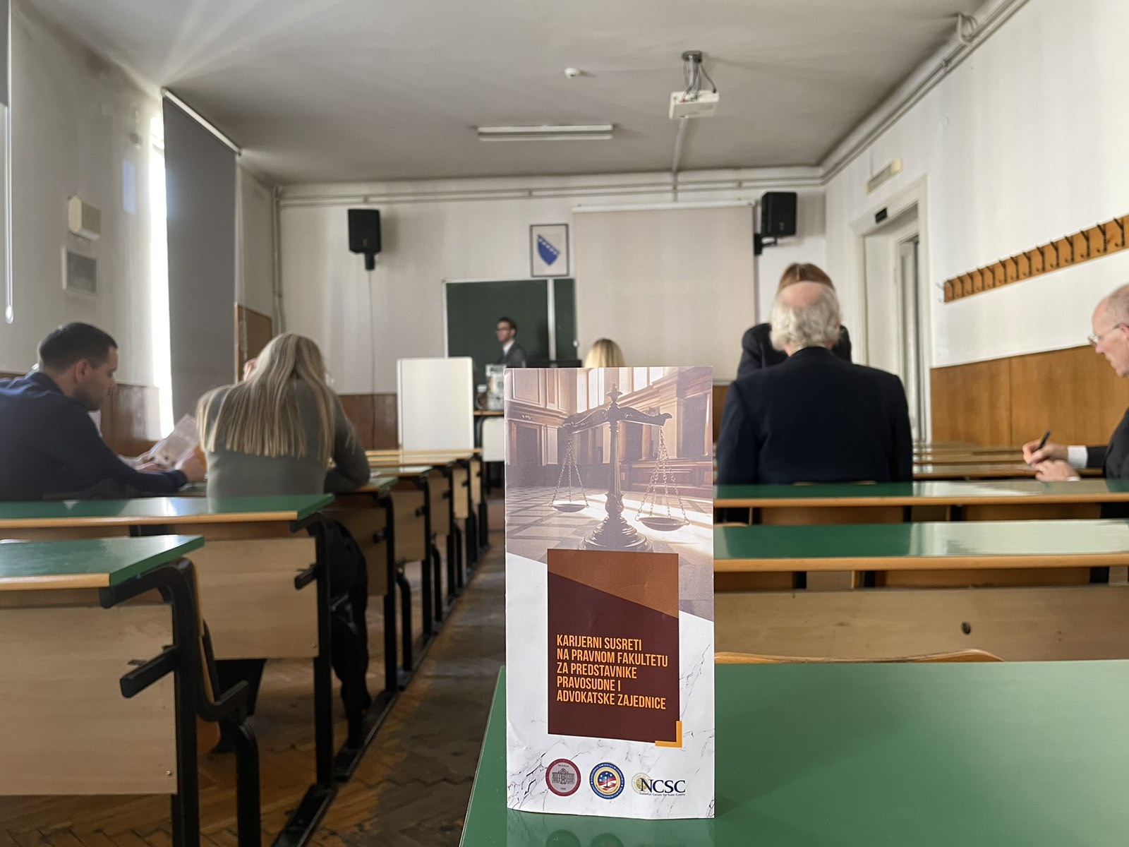 Pravni fakultet Univerziteta u Sarajevu u partnerstvu s Nacionalnim centrom za državne sudove (NCSC) organizovao je “Karijerne susrete na Pravnom fakultetu za predstavnike pravosudne i advokatske zajednice" kako bi se profesionalnoj pravnoj zajednici predstavile praktične vještine i znanja studenata prava kao budućih praktičara.