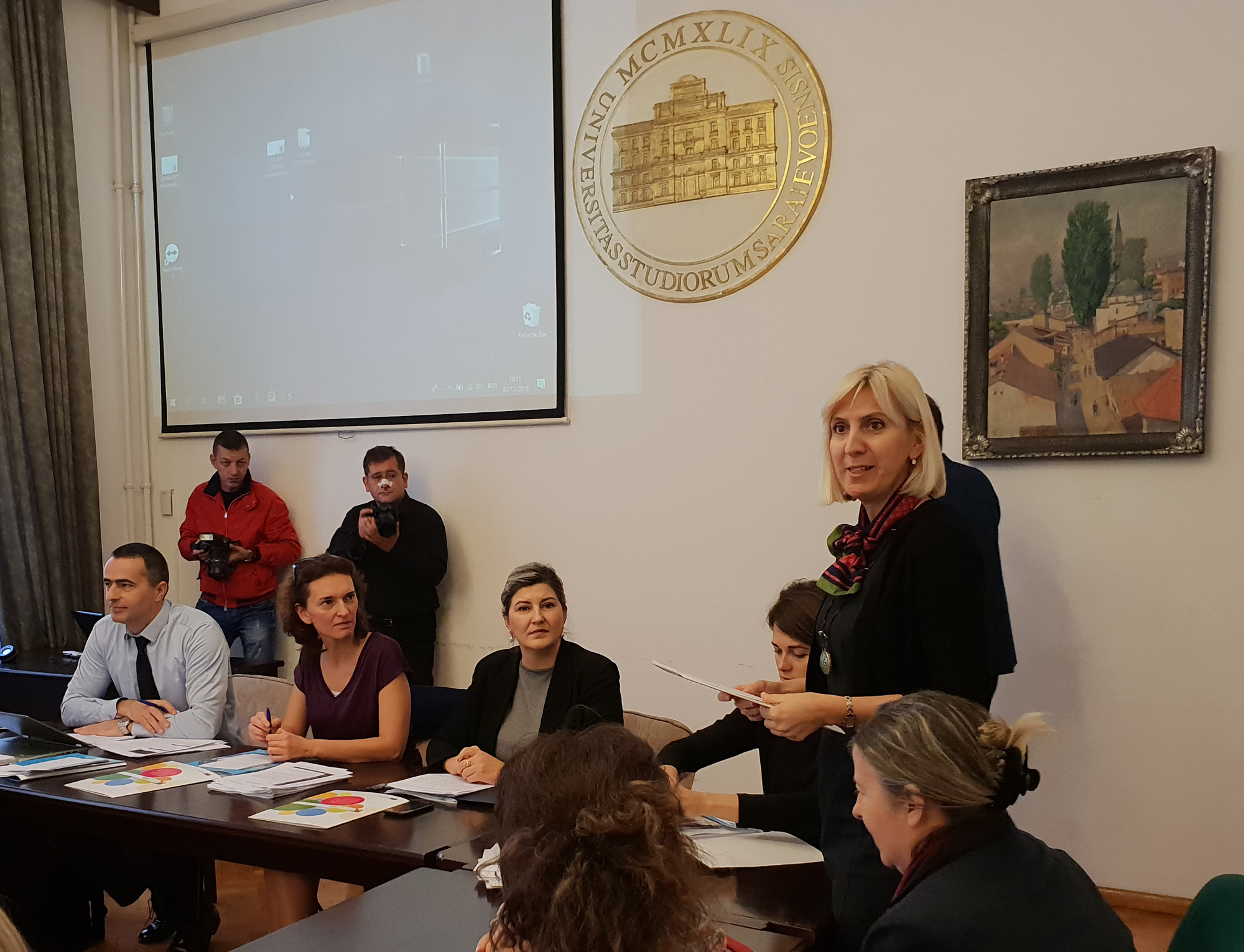 Pozdravnim obraćanjima susret su otvorili prof. dr. Maida Čohodar-Husić, prorektorica za kvalitet Univerziteta u Sarajevu, gospodin Suad Muhibić, direktor Nacionalne Erasmus+ kancelarije BiH, i gospođa Aida Durić, Ministarstvo civilnih poslova BiH.