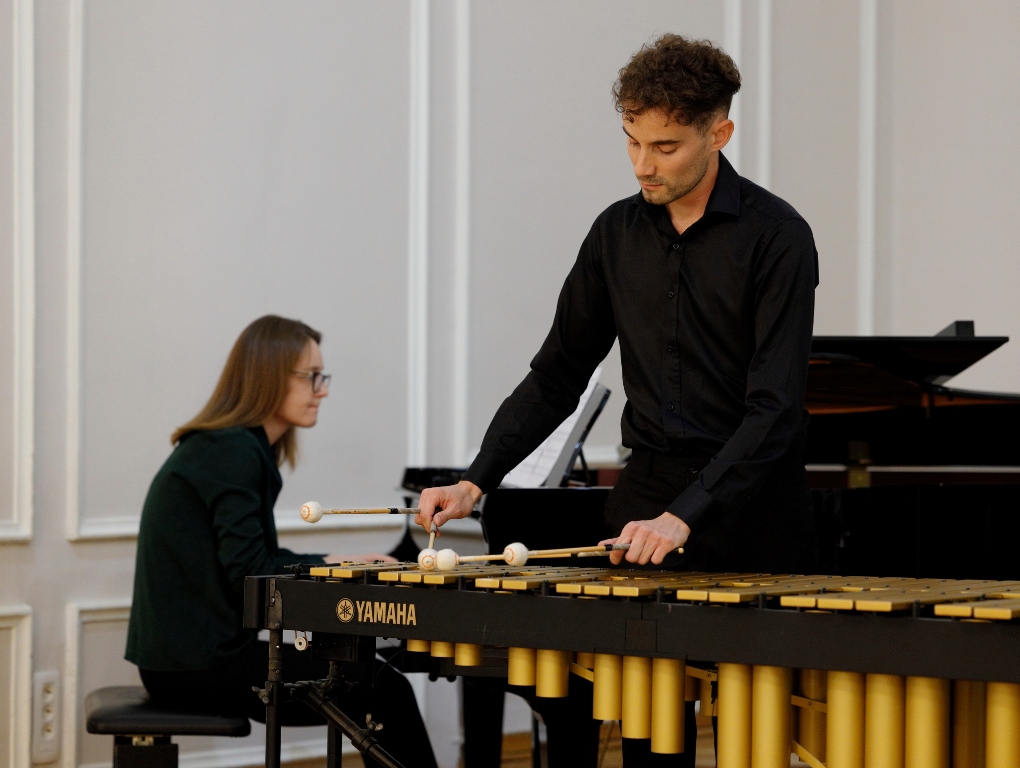 Marino Repanić (vibrafon) i Zerina Šabotić (klavir) izveli su djelo “Atalanta” za vibrafon, klavir i traku Johna Psathasa, a zatim su Roko Radunić, Marino Repanić i Teo Udović interpretirali “Zoo” za multi-percussion trio Nicolasa Martynciowa.