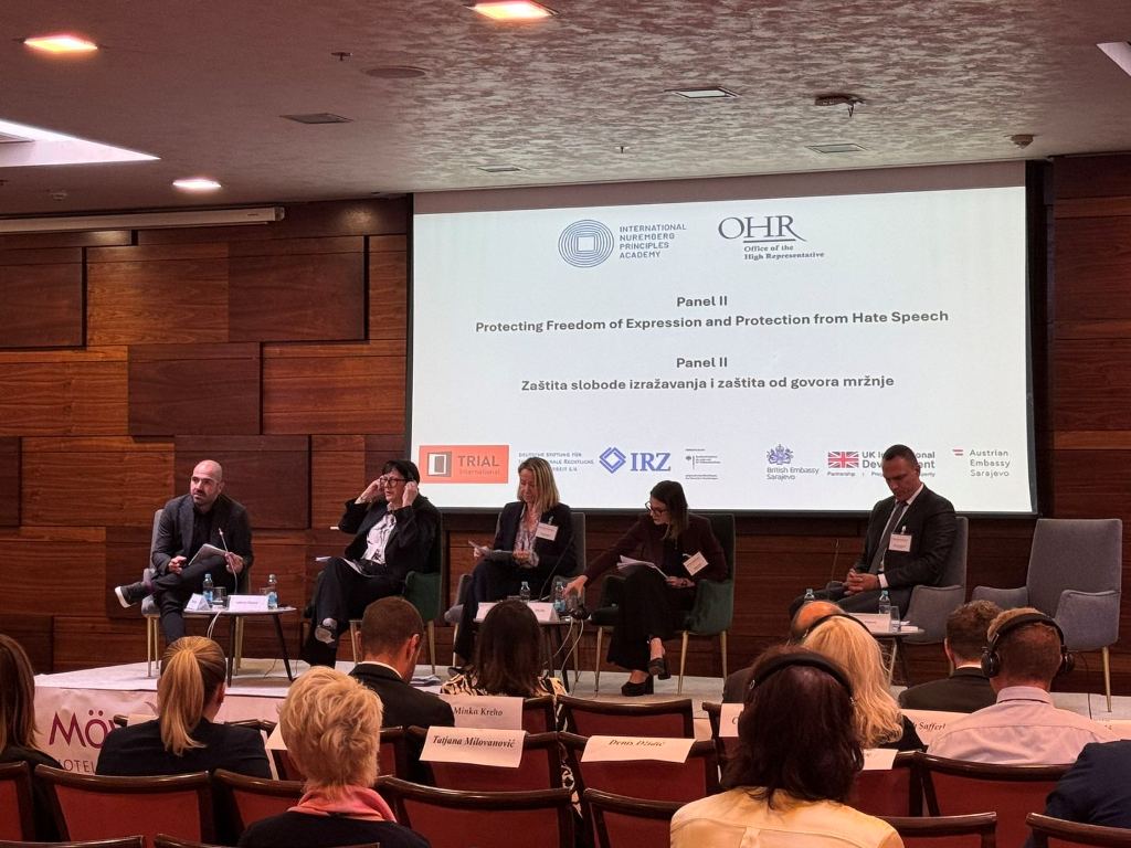 Univerzitet u Sarajevu - Fakultet za kriminalistiku, kriminologiju i sigurnosne studije učestvovao je na međunarodnoj konferenciji koju je organizirala International Nuremberg Principles Academy u saradnji sa Uredom visokog predstavnika u BiH, uz podršku IRZ i TRIAL International pod nazivom “Kriminaliziranje negiranja genocida: Pravo, odgovornost i prevencija”. Posebno ističemo da je profesor krivičnog prava na našem fakultetu prof. dr. Almir Maljević govorio na panelu “Zaštita slobode izražavanja i zaštita od govora mržnje”, dajući važan doprinos raspravi o ravnoteži između ljudskih prava i zaštite društva od štetnih narativa. Ponosni smo i na naše studente koji su aktivno učestvovali u radu konferencije i time pokazali koliko je važno uključivanje mladih u procese izgradnje pravde i pomirenja. Ovaj događaj bio je izuzetna prilika za razmjenu znanja i iskustava, te još jedna potvrda naše zajedničke posvećenosti pravdi, istini i zakonu.