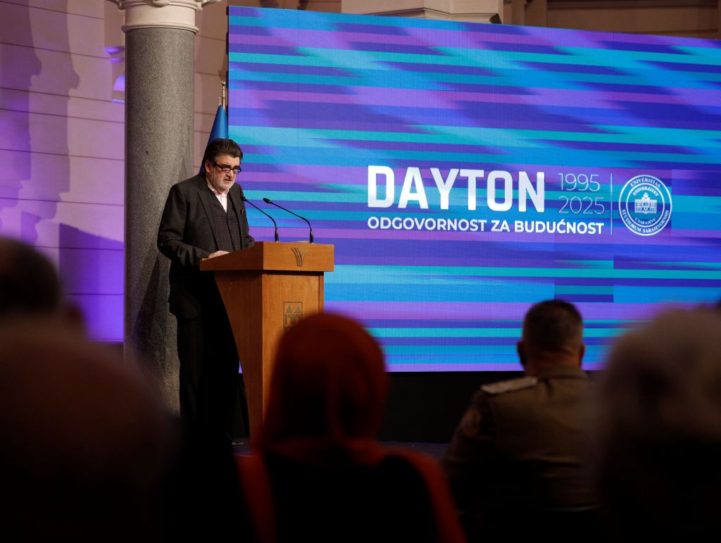 „Danas, trideset godina nakon potpisivanja Dejtonskog mirovnog sporazuma, kao naučna i akademska zajednica imamo obavezu da otvoreno, odgovorno i bez zadrške govorimo o njegovim posljedicama, granicama i značenju za budućnost Bosne i Hercegovine.Vrijeme je da kao društvo prerastemo Dejtonski mirovni sporazum i da kroz demokratske reforme, uz puno poštovanje međunarodnog prava i sudskih presuda, kreiramo novi bosanskohercegovački ustavni okvir“,istakao jeprof. dr. Tarik Zaimović, rektor Univerziteta u Sarajevu.