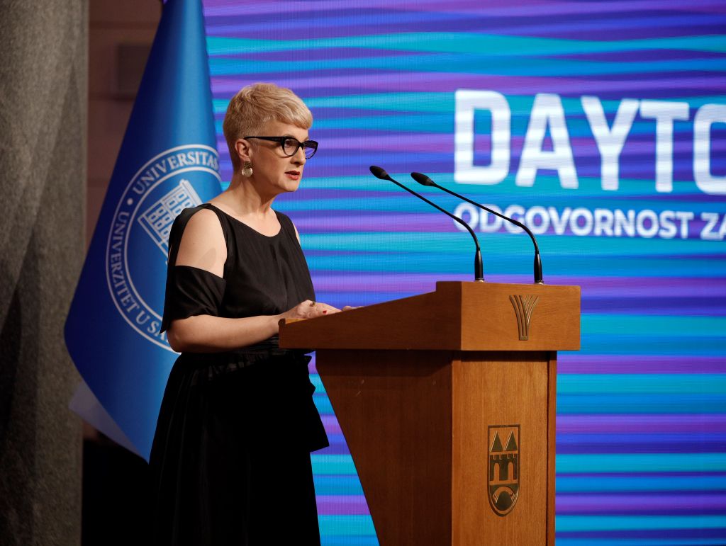 „Ova konferencija nije samo komemoracija Dejtona, ni puka retrospektiva. Ona je poziv na novo promišljanje društvenog ugovora, ne onog koji ruši mir, već onog koji ga nadograđuje. Vrijeme je da prestanemo zazirati od razgovora o promjenama, o reformama, o novom ustavnom okviru. Promjena ne smije biti tabu ako je cilj pravednije, funkcionalnije i slobodnije društvo”, pojasnila je prof. dr. Zinka Grbo, dekanica Pravnog fakulteta i predsjednica Naučnog odbora.