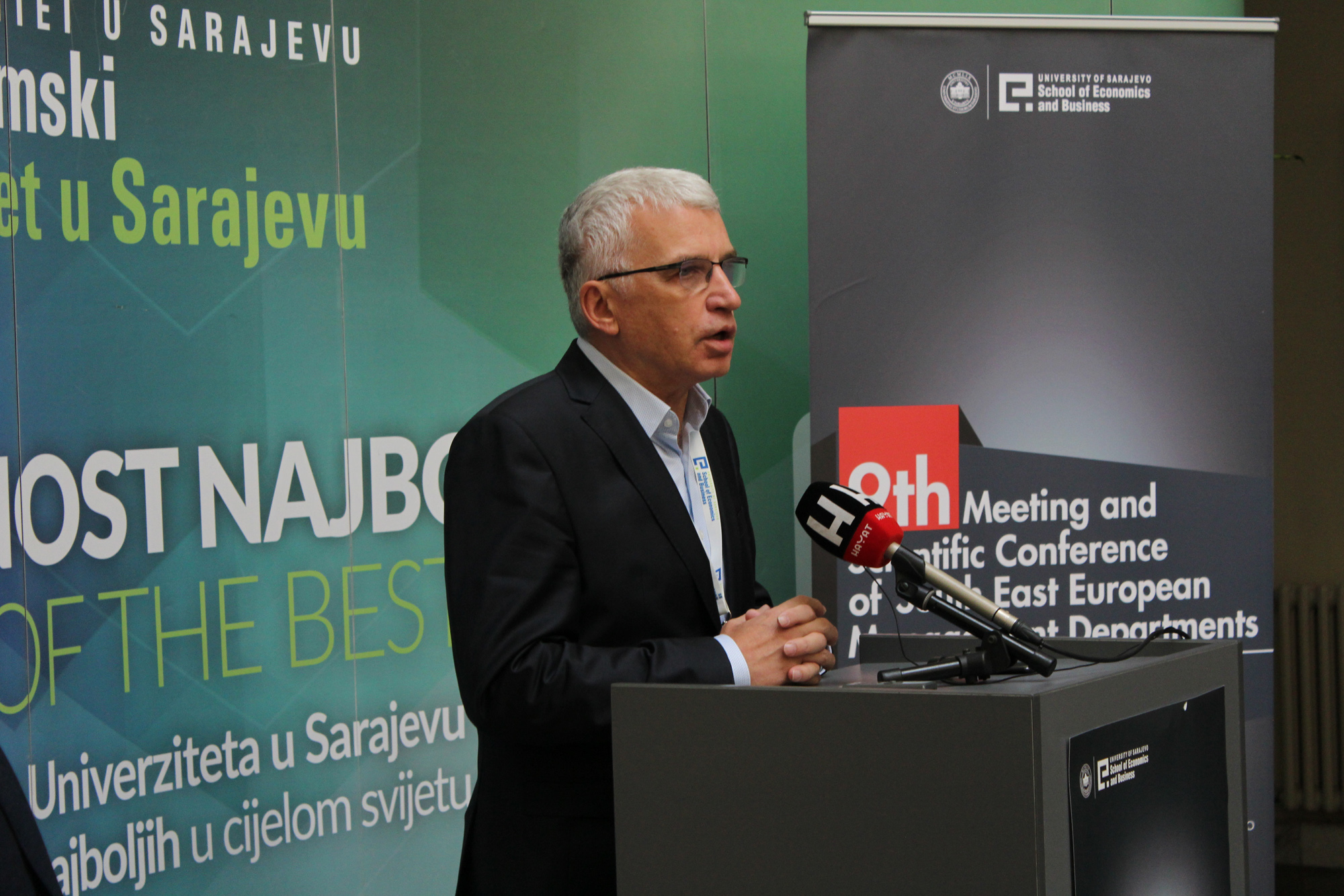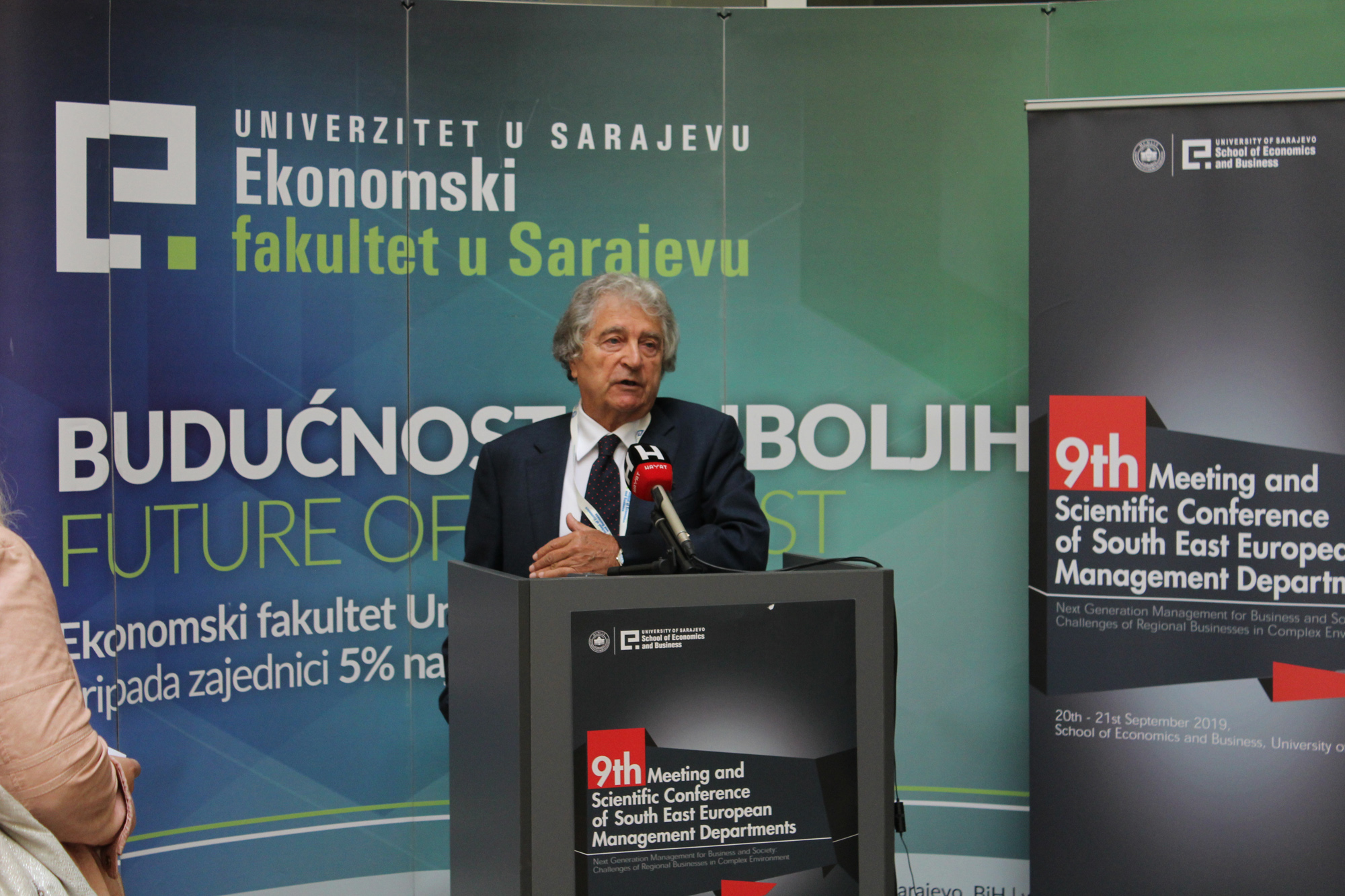 Sarajevo, 20. septembar 2019. – IX Interkatedarski skup katedri za menadžment, organizaciju i preduzetništvo Jugoistočne Evrope na Ekonomskom fakultetu Univerziteta u Sarajevu otvorio je keynote govornik profesor emeritus Hasan Muratović, nekadašnji rektor Univerziteta u Sarajevu i dugogodišnji profesor Ekonomskog fakulteta u Sarajevu, izlaganjem o temi „Teorije menadžmenta: tradicionalna i savremena razmatranja“. Glavni panel pod nazivom „Četvrta industrijska revolucija i menadžment: Menadžment 3.0 – nova paradigma“ vodio je, također, dugogodišnji profesor menadžmenta na Ekonomskom fakultetu u Sarajevu dr. Aziz Šunje.