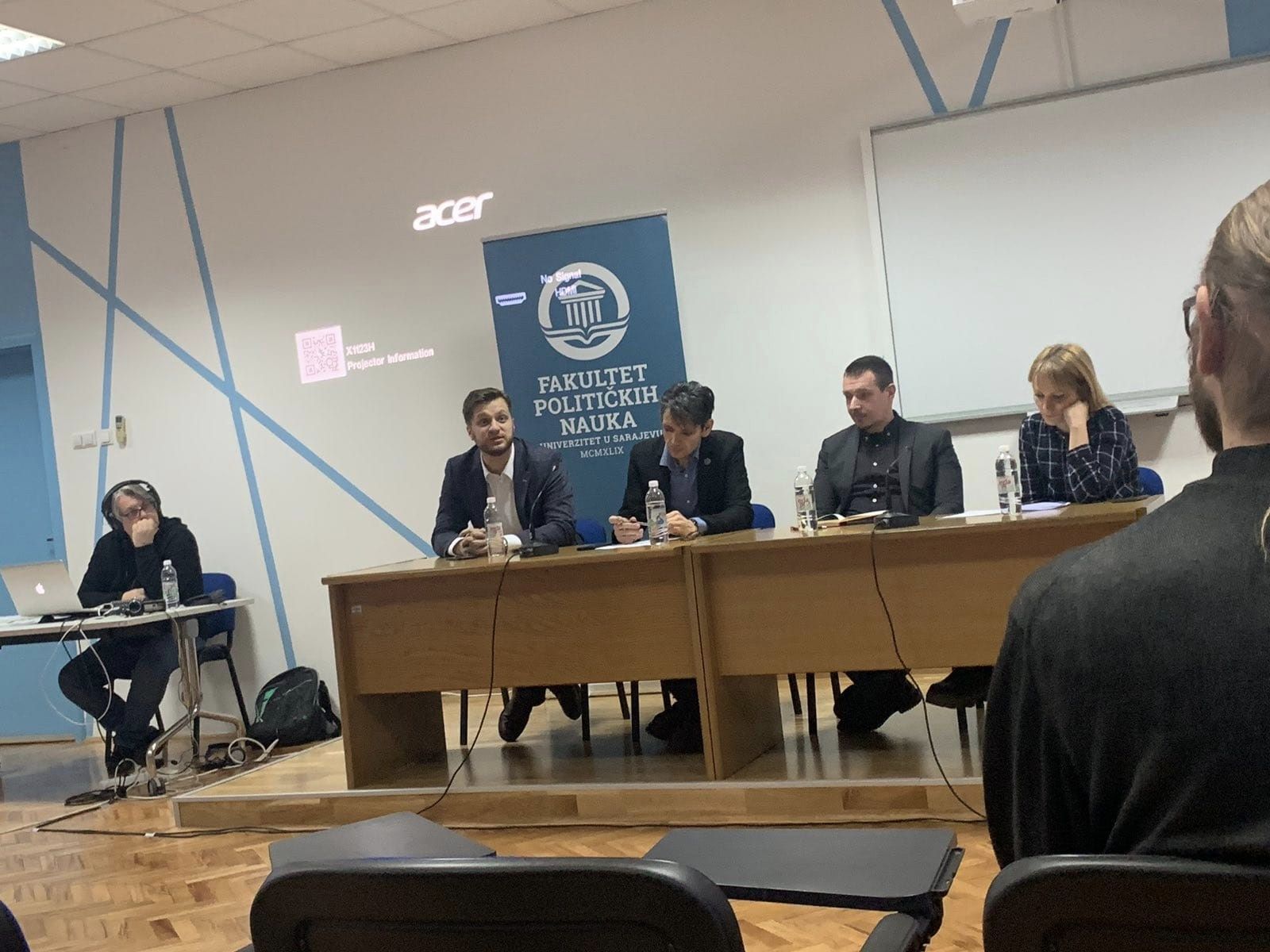 Na panel diskusiji koju je moderirao viši asistent i doktorand na Fakultetu političkih nauka u Sarajevu, Jasmin Hasanović, učestvovali su: Irfan Čengić, delegat u Domu naroda Parlamenta Federacije Bosne i Hercegovine ispred Socijaldemokratske partije Bosne i Hercegovine, doc. dr. Samir Forić sa Odsjeka za sociologiju i vanredna prof. dr. Belma Buljubašić sa Odsjeka za komunikologiju na Fakultetu političkih nauka UNSA.