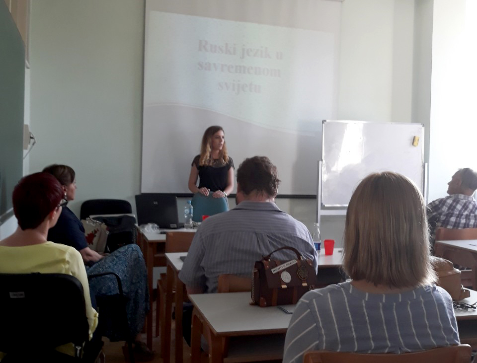 U saradnji Centra za afirmaciju i razvoj i Odsjeka za slavenske jezike i književnosti na Filozofskom fakultetu Univerziteta u Sarajevu 13. juna 2019. godine održana je prezentacija „Ruski jezik u savremenom svijetu“, koju je pripremila Vedrana Pušara, predavač ruskog jezika.