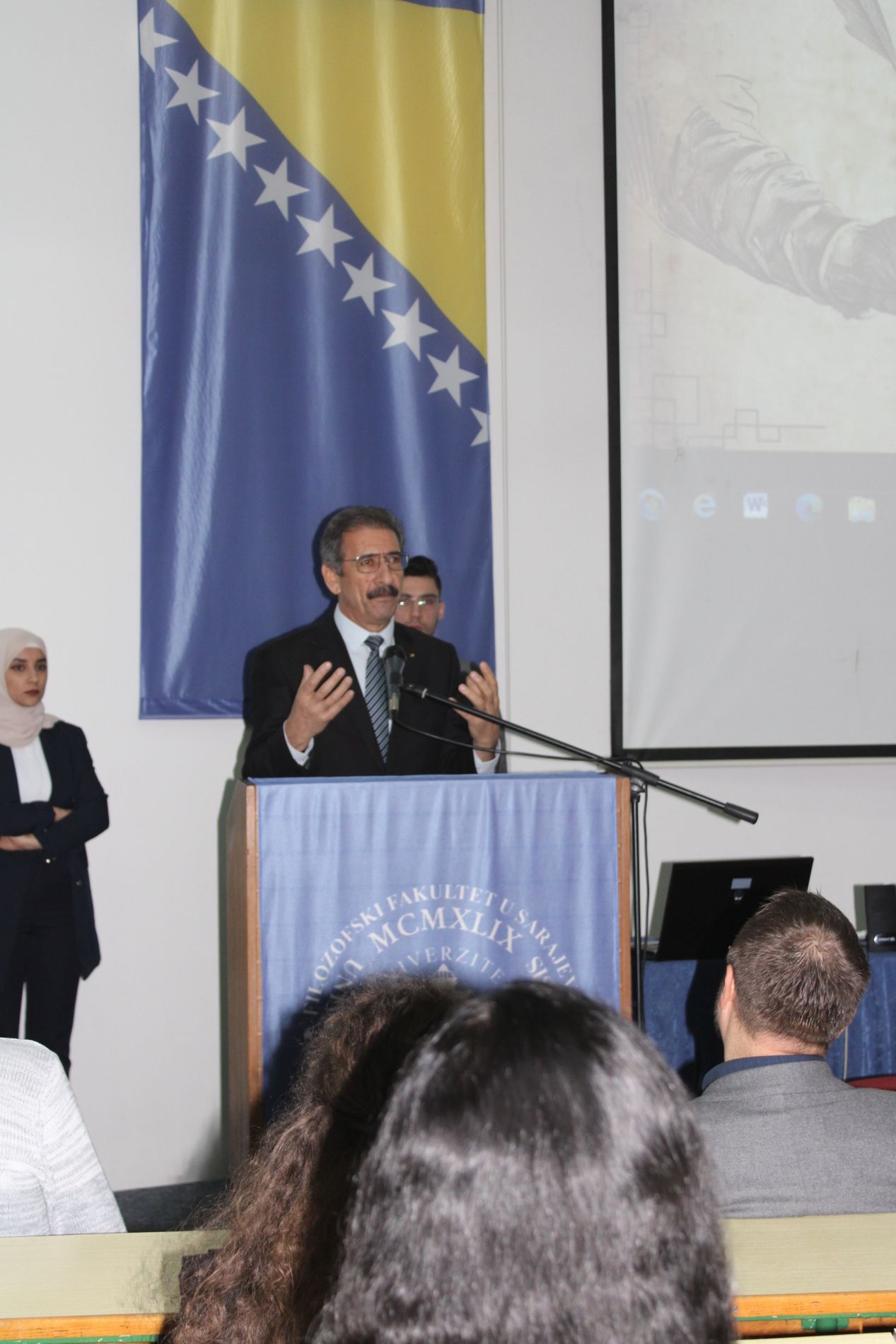 U ime Filozofskog fakulteta, dobrodošlicu je uputila prodekanesa za naučno-istraživački rad, međunarodnu akademsku saradnju i izdavaštvo dr. Minka Džanko. Uvodnu besjedu o arapskom jeziku održao je šef diplomatskog kora arapskih zemalja u Bosni i Hercegovini Nj. E. gosp. Rezeq N. M. Namoora. Program je zatvoren prigodnim riječima Nj. E. gosp. Yassera Abdelrahmana Alija Soroura, ambasadora Arapske Republike Egipat, i Nj. E. gosp. Osame Dakhela R. Alahmadija, ambasadora Kraljevine Saudijske Arabije u Bosni i Hercegovini.