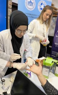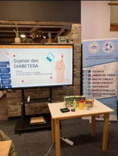Viša asistentica Almedina Hajrović je održala predavanje o dijabetesu i inzulinskoj rezistenciji (IR), pri čemu su istaknuti faktori rizika, preventivni modeli, modeli procjene rizika kao i laboratorijski, antropometrijski parametri u procjeni. Poseban osvrt predavanja usmjeren je ka promociji zdravih stilova života i upravljanju rizikom, te značaju pravilno izbalansirane ishrane i fizičke aktivnosti u prevenciji. Predavanje je završeno edukacijom za samostalno mjerenje glukoze, te su prisutni pozvani na radionicu kontrole vrijednosti glukoze u kapilarnoj krvi. Mjerenje glukoze i individualnu edukaciju o samoprimjeni glukometara održale su studentice sa studijskog programa Laboratorijske tehnologije Adelina Avdović, Sumeja Faljić, Nudžejma Šupuk, Revda Mutahera Amin, Muhidina Balićevac.