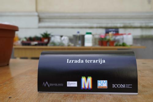 1. „Izrada terarija“ u dva termina (saradnja sa djecom iz KJU „Dom za djecu bez roditeljskog staranja“) – radionice su podržali Balkan Museum Network i The Headley Trust UK;