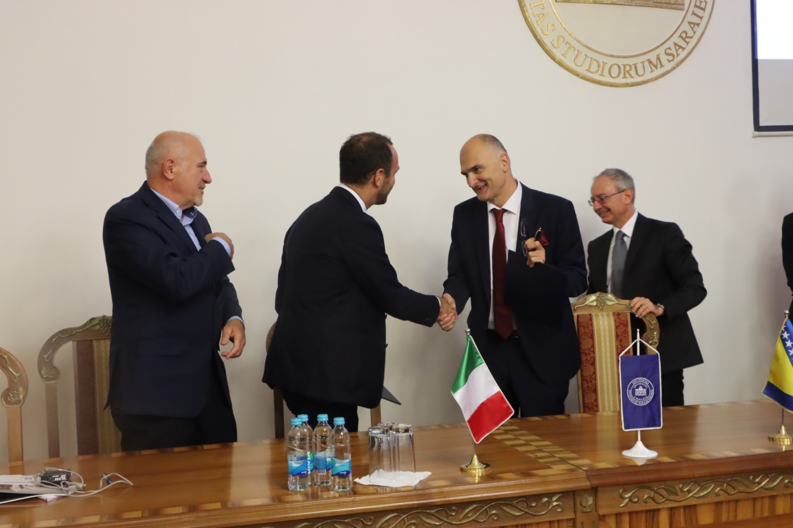Ambasador Republike Italije u Bosni i Hercegovini NJ. E. Marco Di Ruzza zahvalio je Univerzitetu u Sarajevu i Kantonu Sarajevo, posebno Ministarstvu za nauku, visoko obrazovanje i mlade, na spremnosti da se kao partneri uključe u organizaciju događaja koji zapravo predstavlja godišnje predstavljanje diplomatske mreže Republike Italije u svijetu i njihovih napora da podstaknu i podrže naučnu saradnju na međunarodnom nivou. Naglasio je značaj Sporazuma koji je danas potpisan jer će omogućiti razmjenu istraživača, profesora i studenata, te uspostaviti bazu za dalji razvoj zajedničkih programa i projekata istraživačke saradnje.