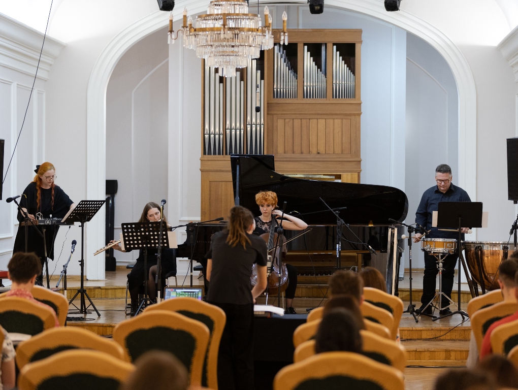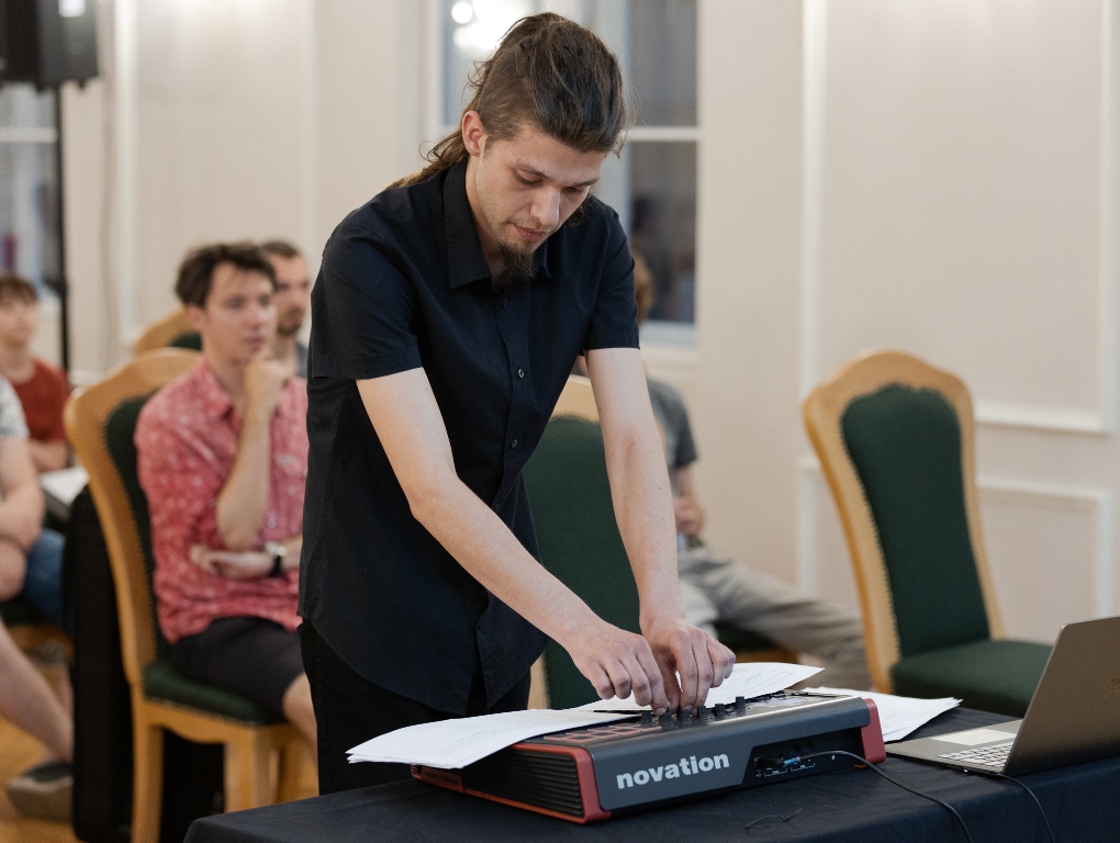 Ovom prilikom predstavljen je rad studenata kompozicije koji su učestvovali u interpretaciji svojih djela. Moamer Balihodžić je svirao vlastitu kompoziciju “ĆIRO” za usnu harmoniku i efekte, nakon čega je Mirza Gološ interpretirao svoj komad “SYNC To BUG” za klavir i traku.